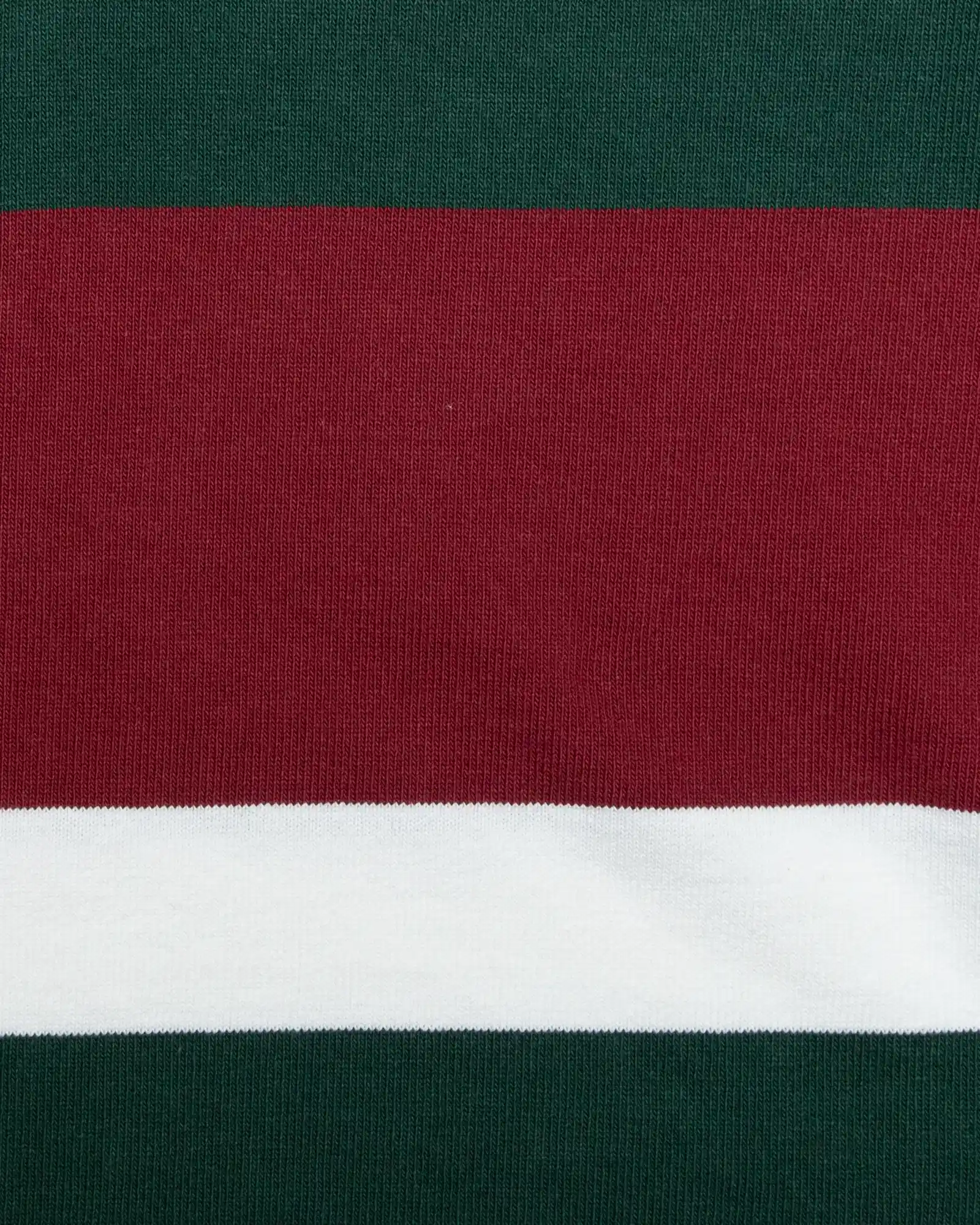 1981年に2台のニットマシンと6人のスタッフでスタートし、今や北米最大のシェアを誇る最高品質のラグビージャージメーカーバーバリアン【BARBARIAN】。創始者のビル・ハートル氏は既存のラグビージャージに疑問を持ち、その一つ一つを分解してデザイン、 カッティング、縫製、付属品、生地の質、強度など、あらゆる角度から細部にわったて研究した上で、オリジナルの生産を開始。 丈夫さはもちろん、洗うほどに体に馴染み心地いい風合いが増してきます。 本物を知る多くのラガーメンからの信頼も厚く、またタウンウエアとしてもそのデザインや着心地は十分満足していただけます。