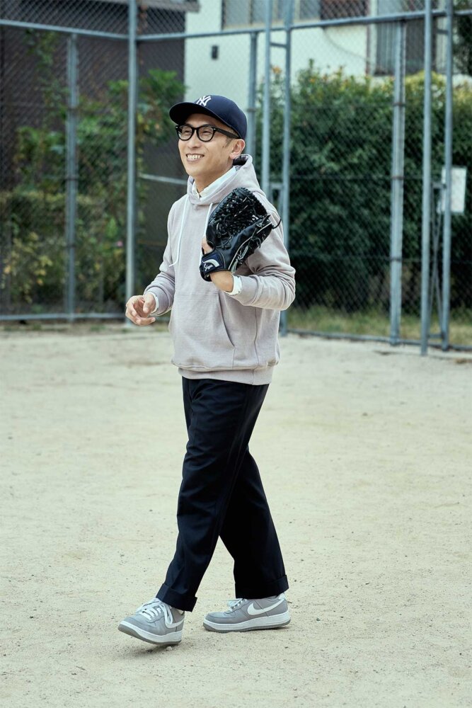 「デザイナーの藤戸剛さんが大好物だと自称するシープスキンウエアでスタイリング」