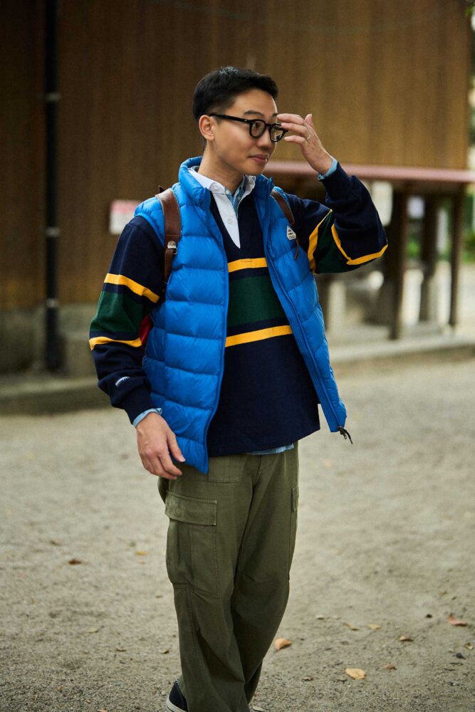 「デザイナーの藤戸剛さんが大好物だと自称するシープスキンウエアでスタイリング」