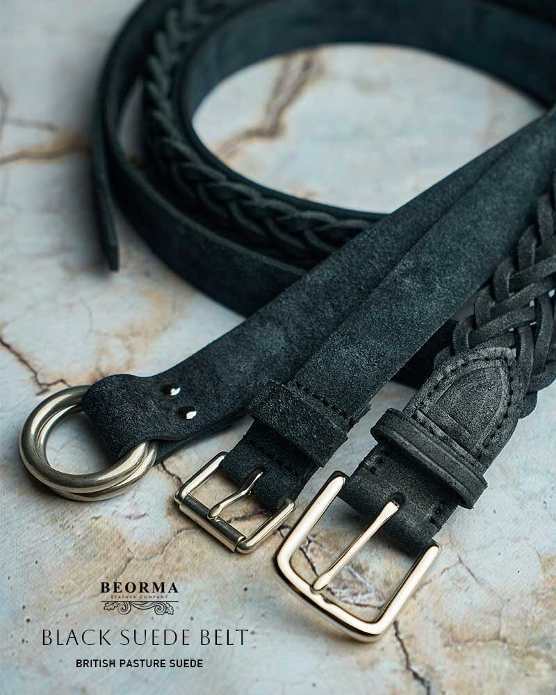 ベオーマのアイコニックなメッシュベルトをスエード素材で仕上げました。肉厚な革を丹念に編み込んでおり、しっかりと安定感のある締め心地は健在。しなやかさがある分、使い始めから抜群のフィット感が味わえます。柔らかな風合いは様々なカジュアルパンツとマッチします。使われている素材は英国産牛革に味のある起毛加工を施した「ブリティッシュパスチャースエード」です。