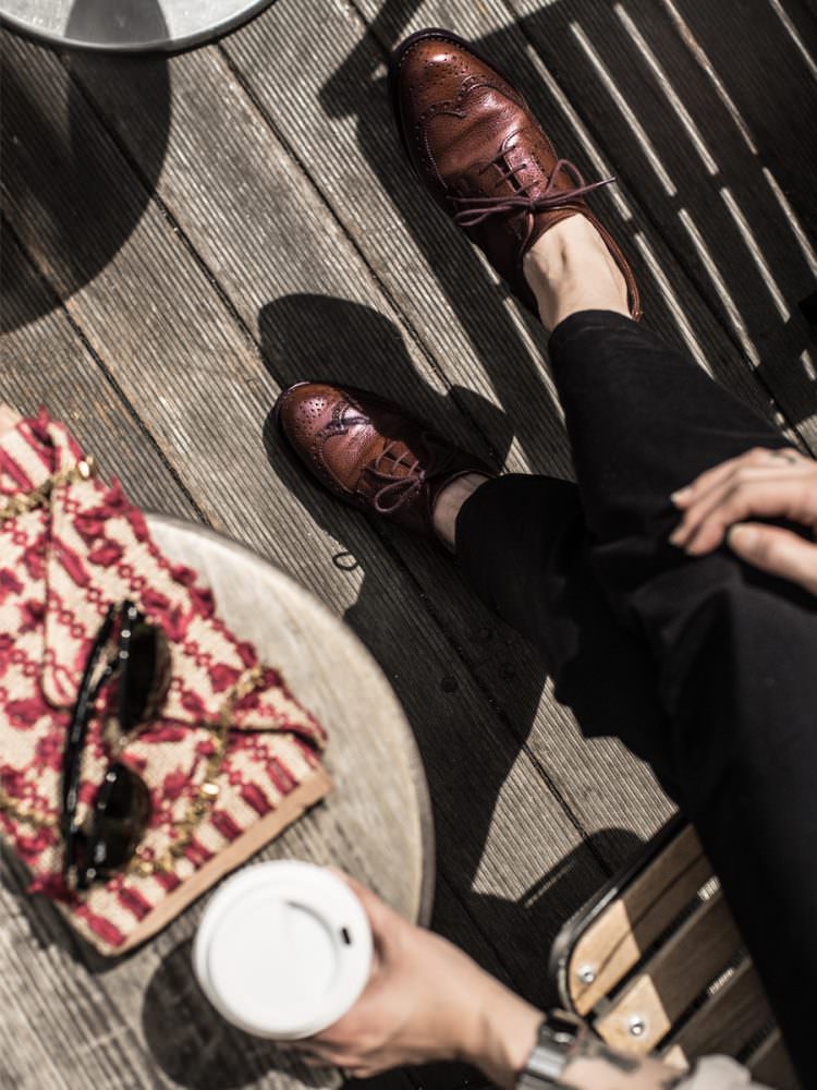 「デザイナーの藤戸剛さんが大好物だと自称するシープスキンウエアでスタイリング」