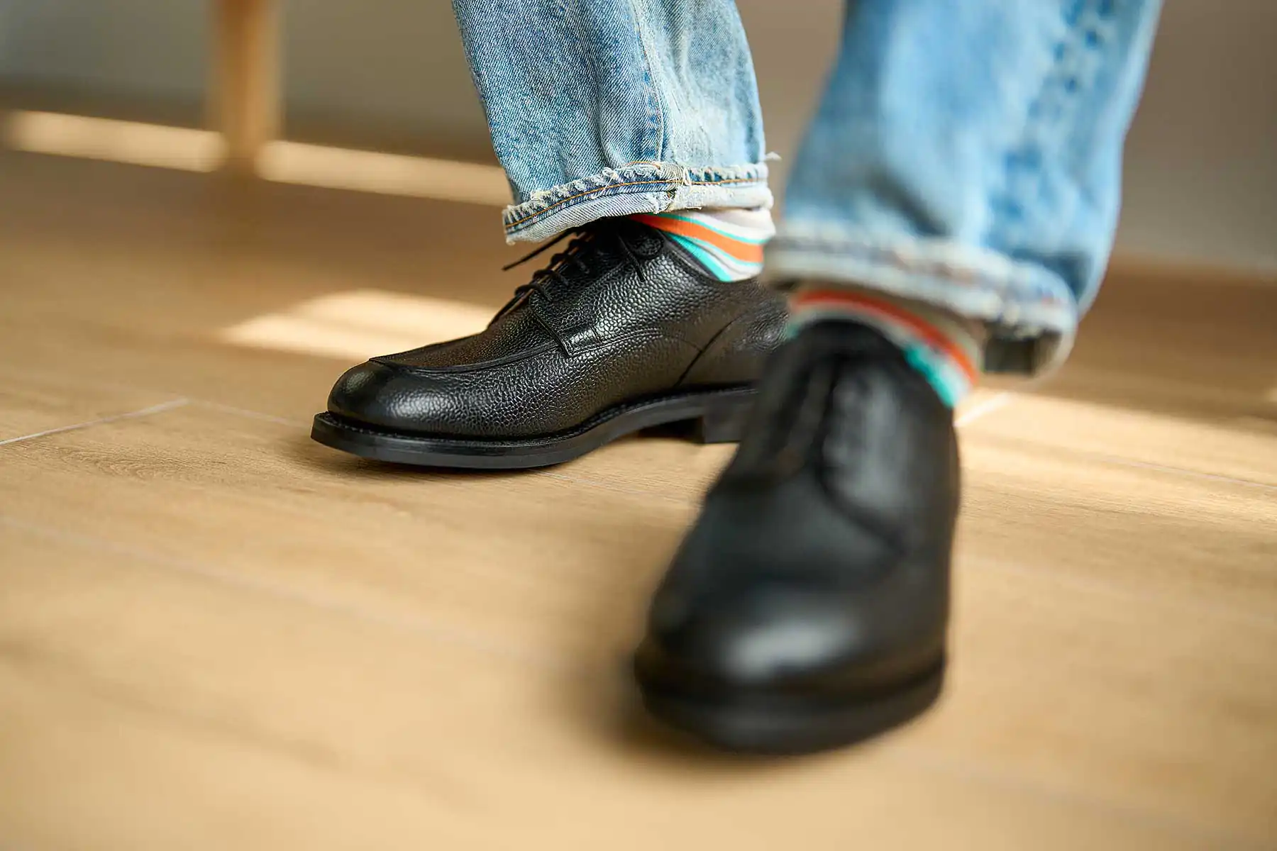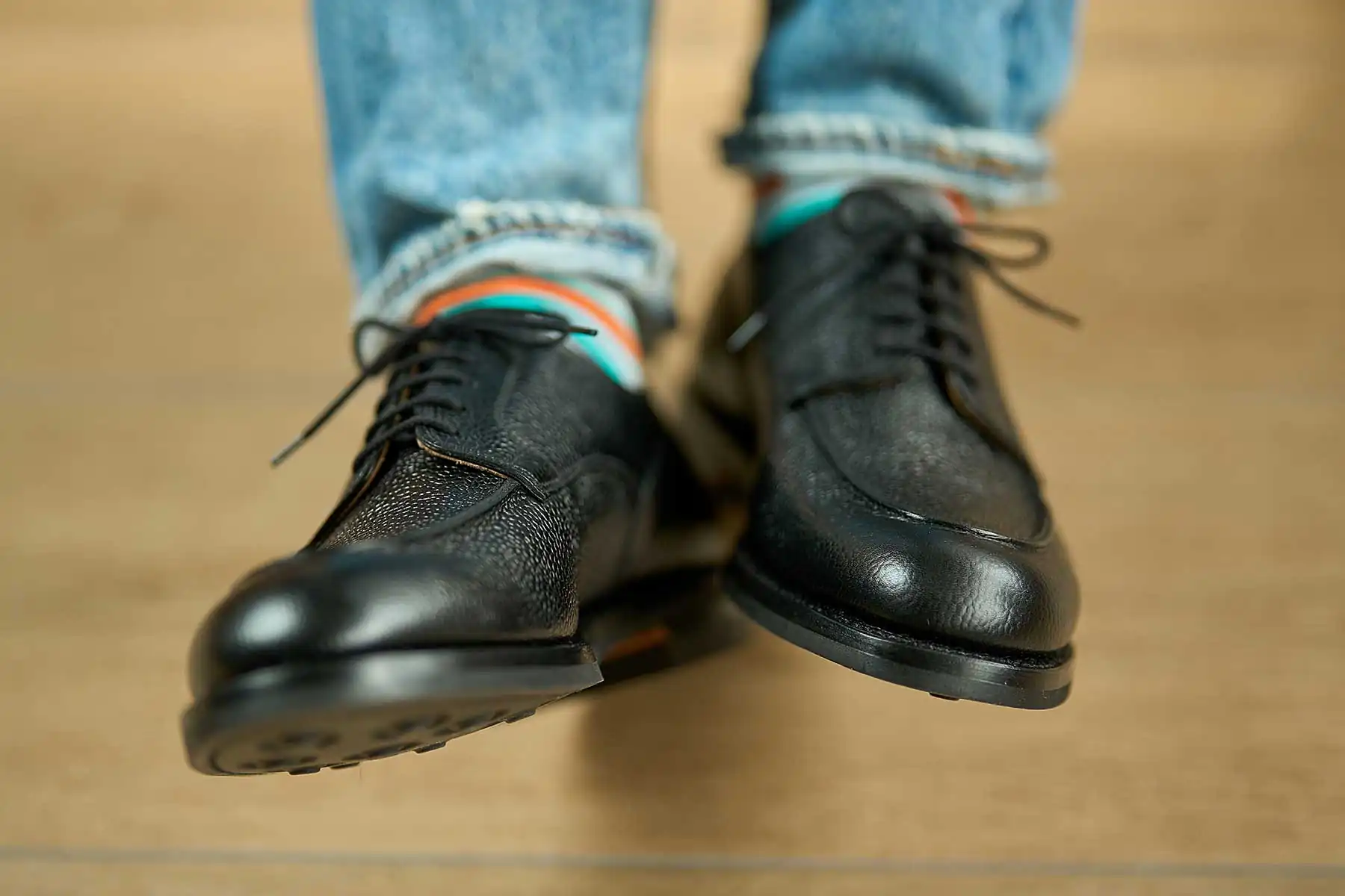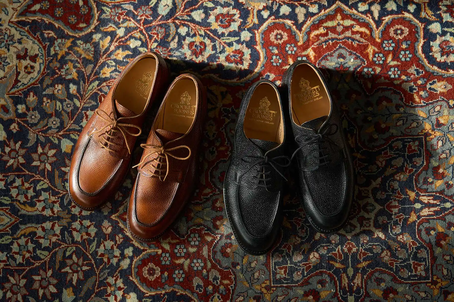 第二次世界大戦時、C&Jは英国軍が将校向けに支給していたオフィサーシューズを生産していた歴史を持ちます。当時、そのオフィサーシューズには、やや短めのノーズに厚みのあるつま先、しっかりと丸みを効かせたラウンドトゥを持つ【ミリタリーラスト210】が使われていました。2024年、新たにリリースされた【ラスト394】は、つま先周辺を含む前方のフォルムはミリタリーラスト210をそのまま同じに踏襲し、ヒールカップ(踵部)をややタイトに絞って踵のフィットを向上させたアップデートモデルです。ミリタリーラストの魅力であるぽってりとした高さのあるラウンドトゥや懐古的なフォルムは継承しつつ、履いた時のフィット感は現代的にアレンジされています。