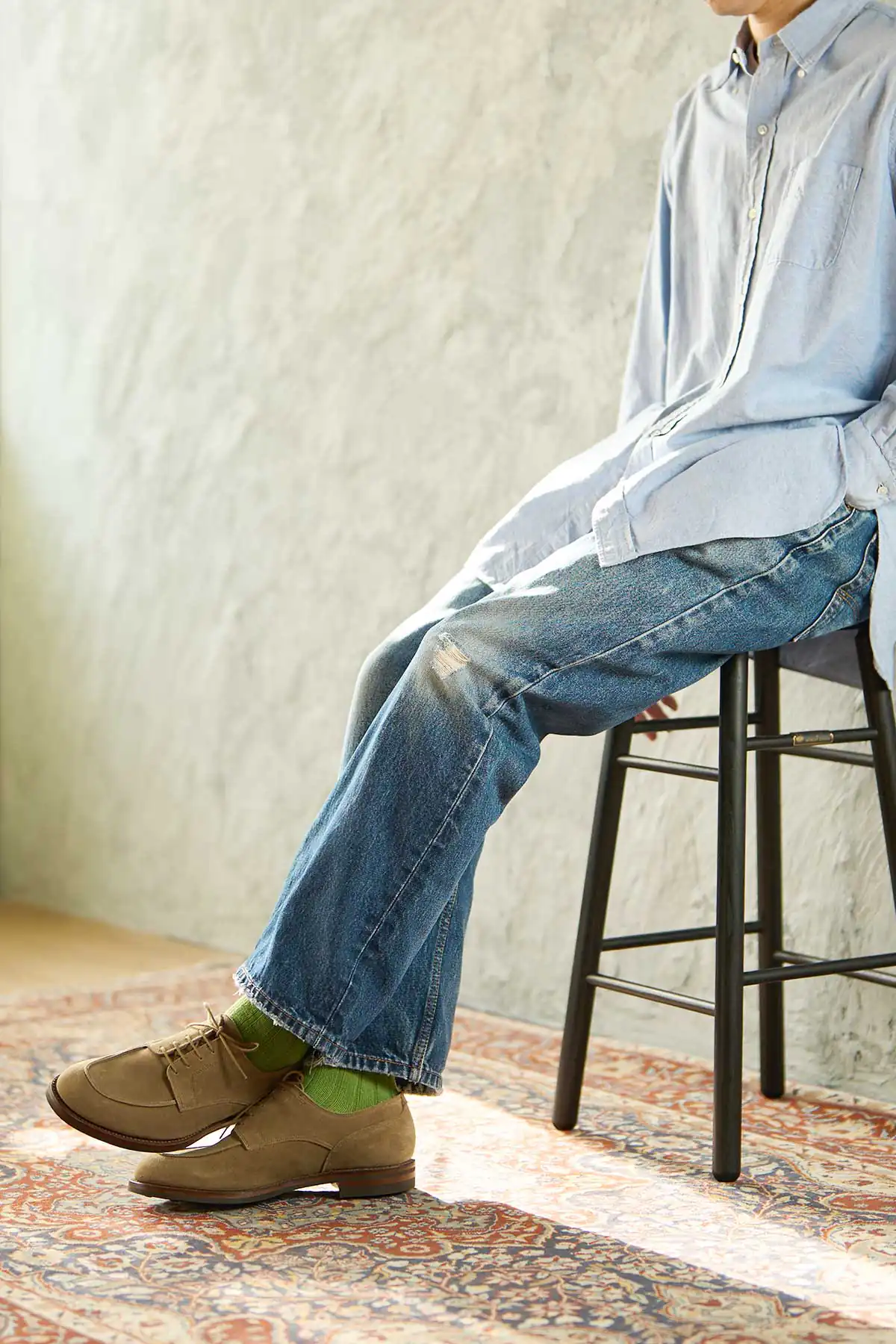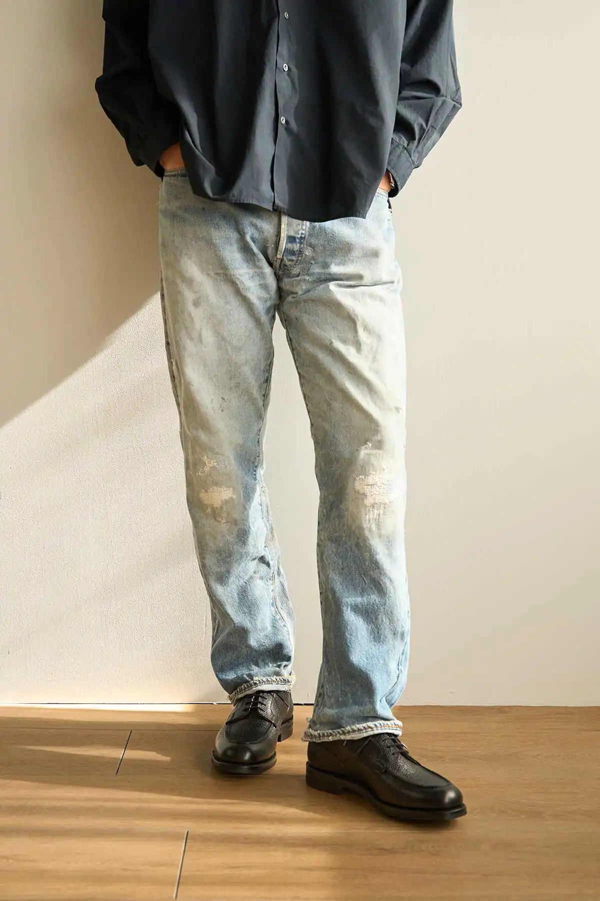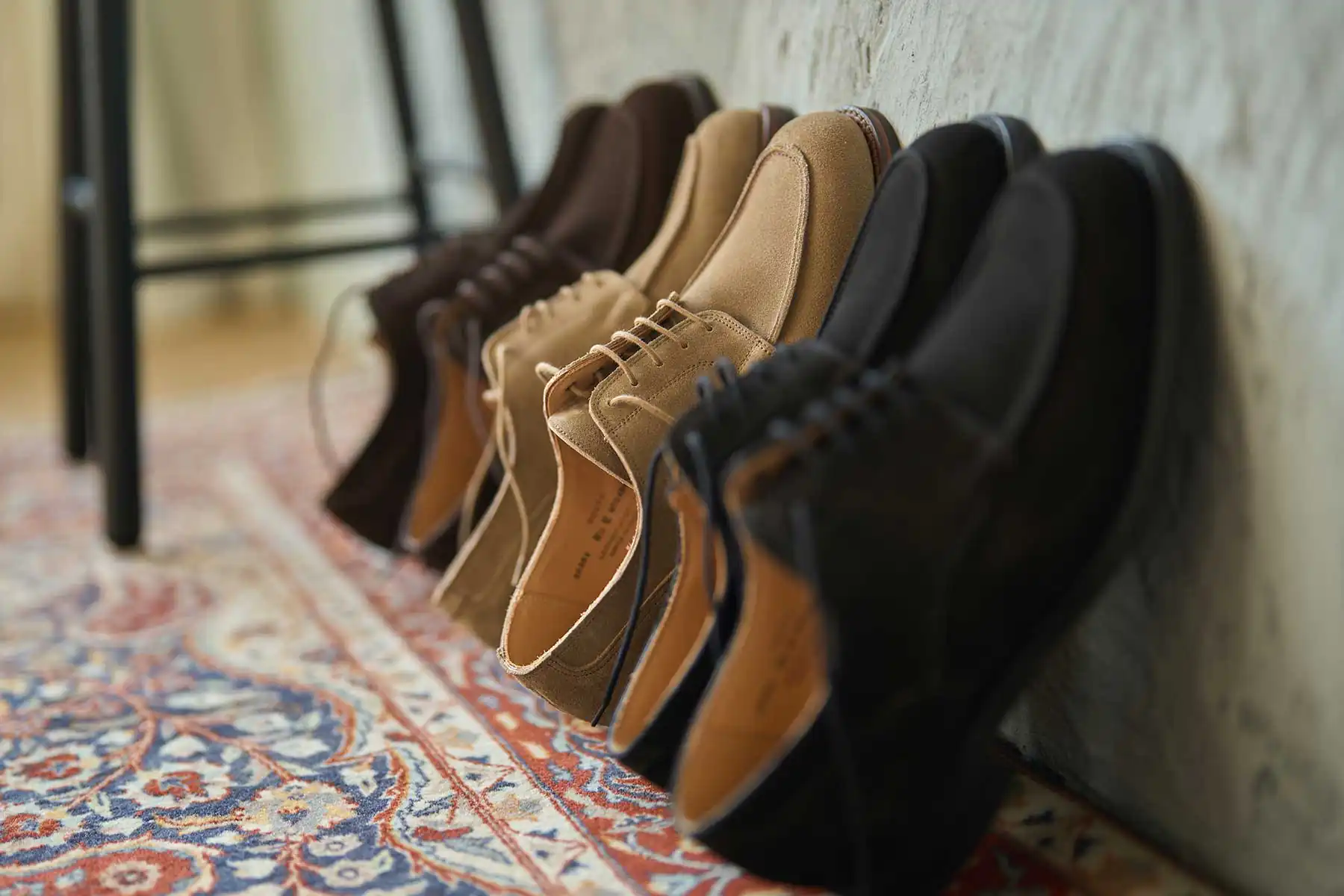 第二次世界大戦時、C&Jは英国軍が将校向けに支給していたオフィサーシューズを生産していた歴史を持ちます。当時、そのオフィサーシューズには、やや短めのノーズに厚みのあるつま先、しっかりと丸みを効かせたラウンドトゥを持つ【ミリタリーラスト210】が使われていました。2024年、新たにリリースされた【ラスト394】は、つま先周辺を含む前方のフォルムはミリタリーラスト210をそのまま同じに踏襲し、ヒールカップ(踵部)をややタイトに絞って踵のフィットを向上させたアップデートモデルです。ミリタリーラストの魅力であるぽってりとした高さのあるラウンドトゥや懐古的なフォルムは継承しつつ、履いた時のフィット感は現代的にアレンジされています。