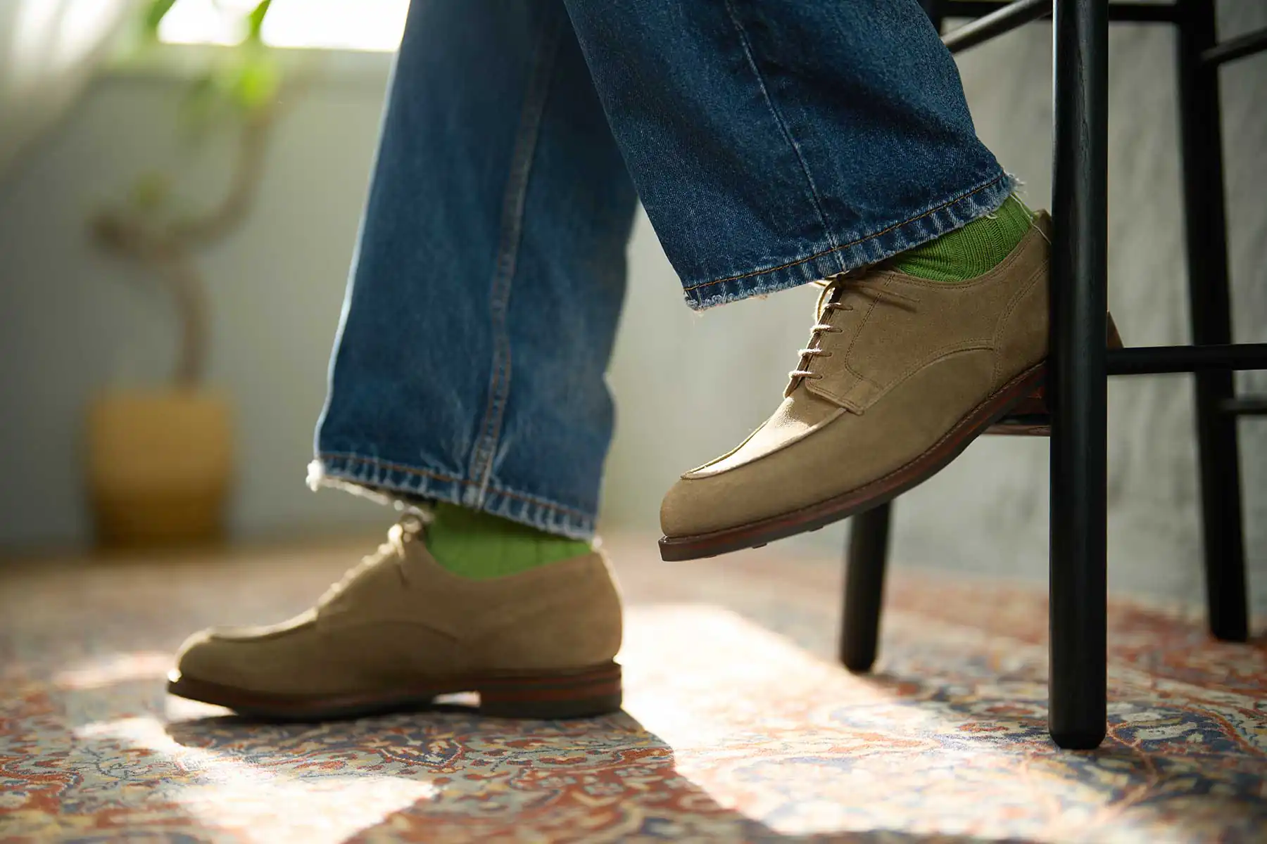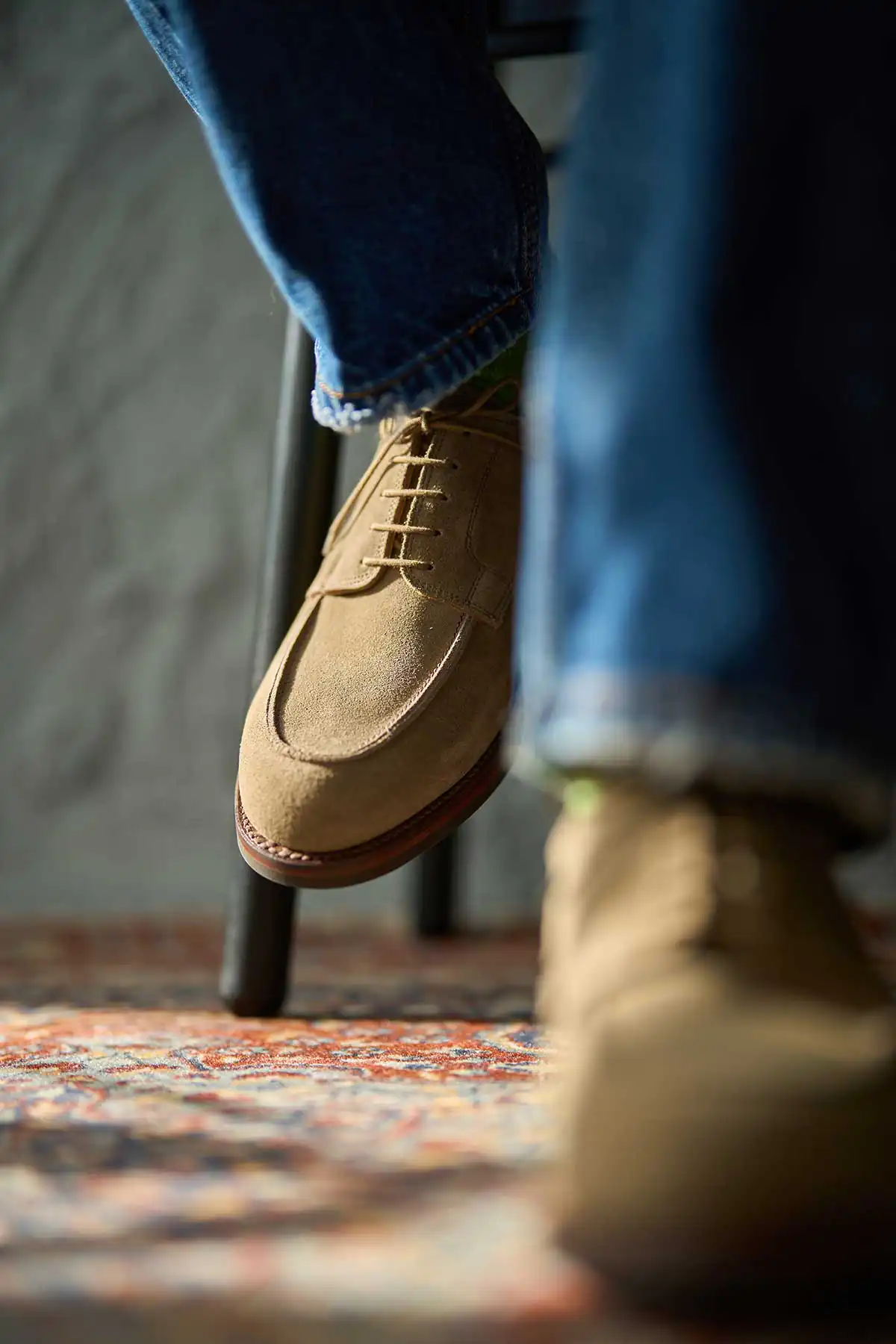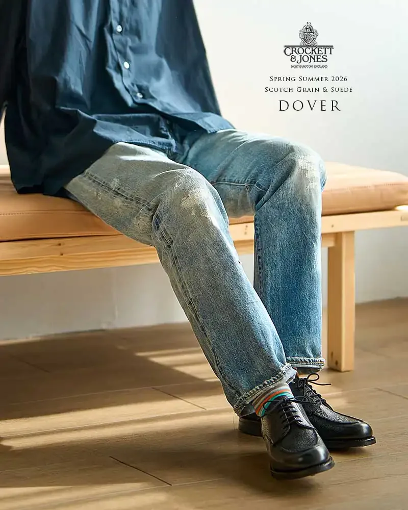 ミリタリーラストのアップデート版【ラスト394】を用いたエプロンフロントダービーシューズの「ドーバー」。ボリューミーなラウンドトゥによる愛嬌のあるフォルムが特徴的で、つま先はゆとりがありながらも踵部分はしっかりとフォールドされる快適なフィットバランスを持ちます。ハルボロ・ラバー社が新たに改良を加えたニューダイナイトソールを採用。素材の配合率を見直し、柔らかさ、グリップ力、屈曲性が向上したことで足の返りがよく、歩行の快適さをサポートしてくれます。昨年リリースされたスエードモデルに加えて、ブリティッシュカントリーのムードを強調させるスコッチグレインレザーモデルが新たに登場です。
