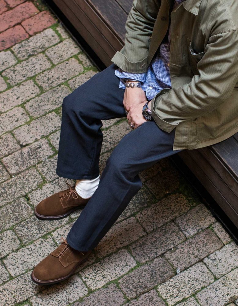 「デザイナーの藤戸剛さんが大好物だと自称するシープスキンウエアでスタイリング」