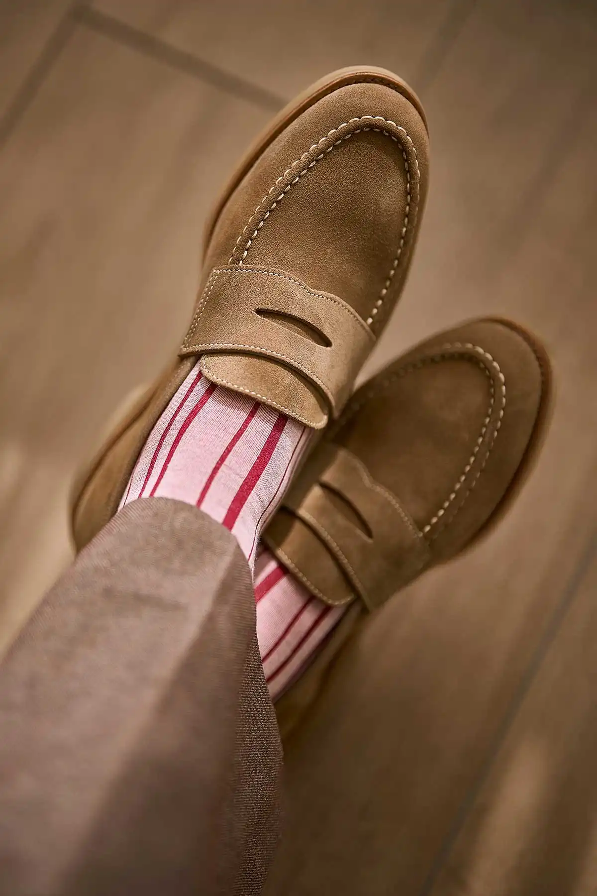 「ソレント」はショートヴァンプのローファーラスト【ラスト391】を採用した快適性に優れたペニーローファーです。靴の内部はレザーライニングを備えていますが、トゥの補強材を排除しており、快適性と耐久性を兼ね備えた構造です。ソール周りはしなやかなウエルトと軽量なパーツを使用し、柔軟性と衝撃吸収性を向上させた「ウェッジソール」採用しています。アッパーに淡いニュアンスカラーのスエード素材を使ったサマースエードコレクションです。ほのかなグリーンの「ピスタチオ」と柔らかなライトブラウン「デザート」の2色展開。
