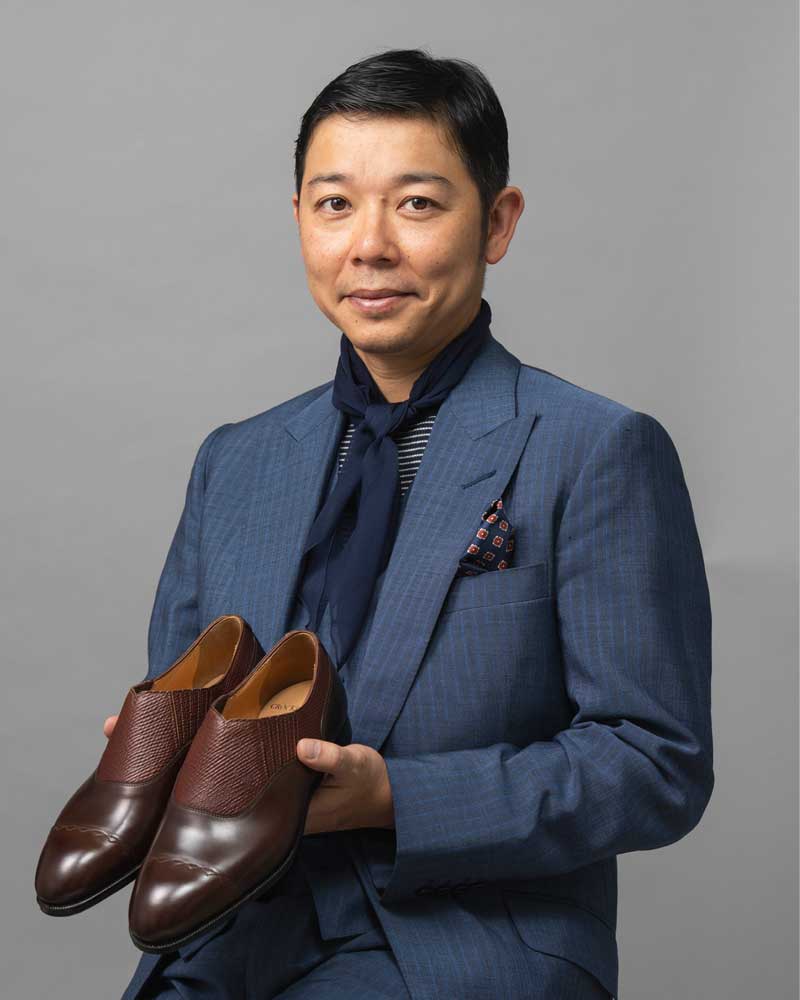 「デザイナーの藤戸剛さんが大好物だと自称するシープスキンウエアでスタイリング」
