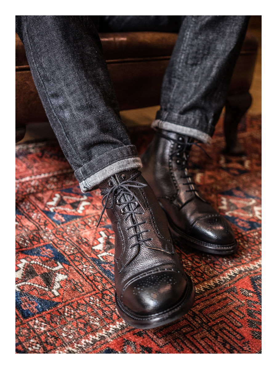 「デザイナーの藤戸剛さんが大好物だと自称するシープスキンウエアでスタイリング」
