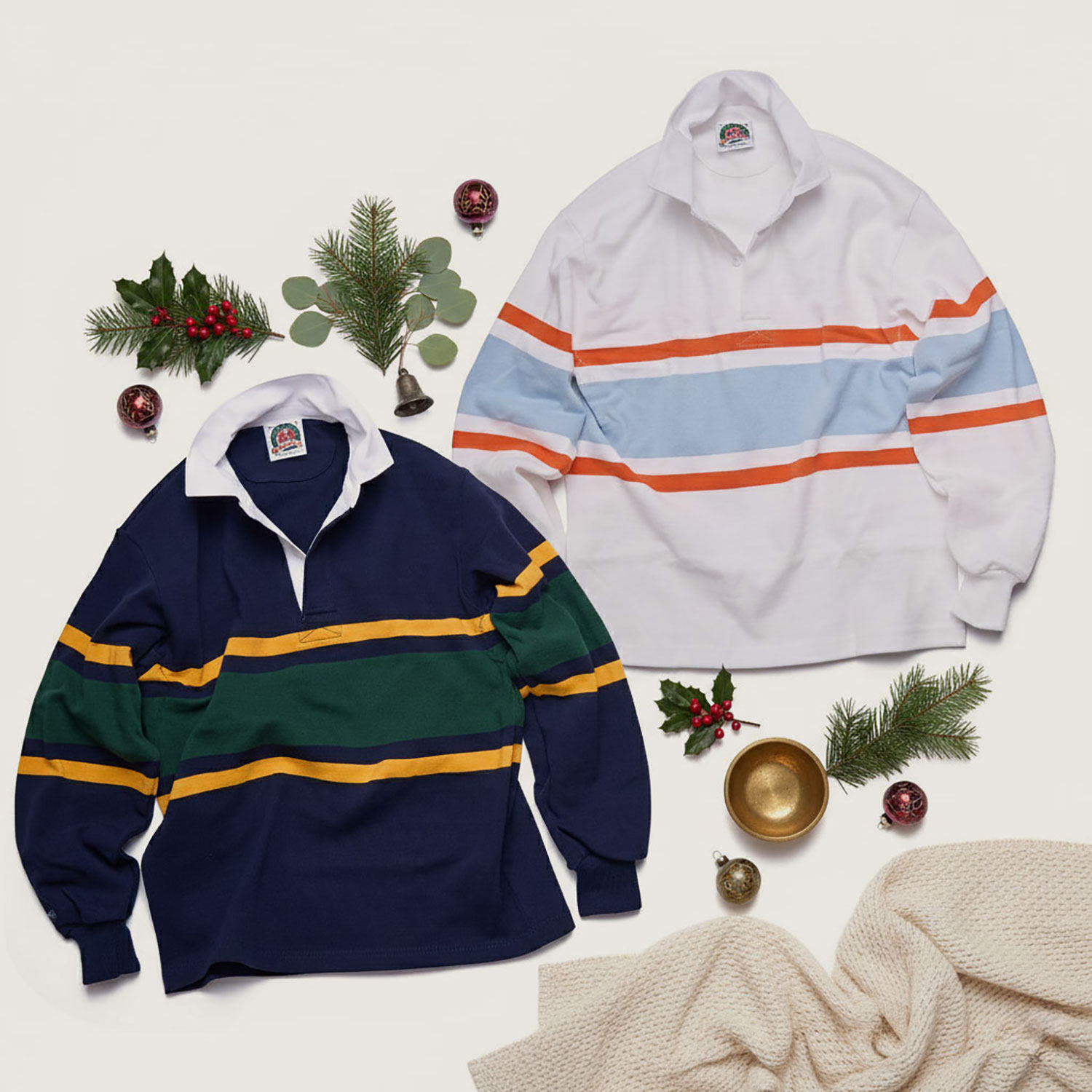 ラグビージャージの定番柄をカラーアレンジしたFRAME別注モデル。リラックスした着心地のカナダサイズフィット採用です。