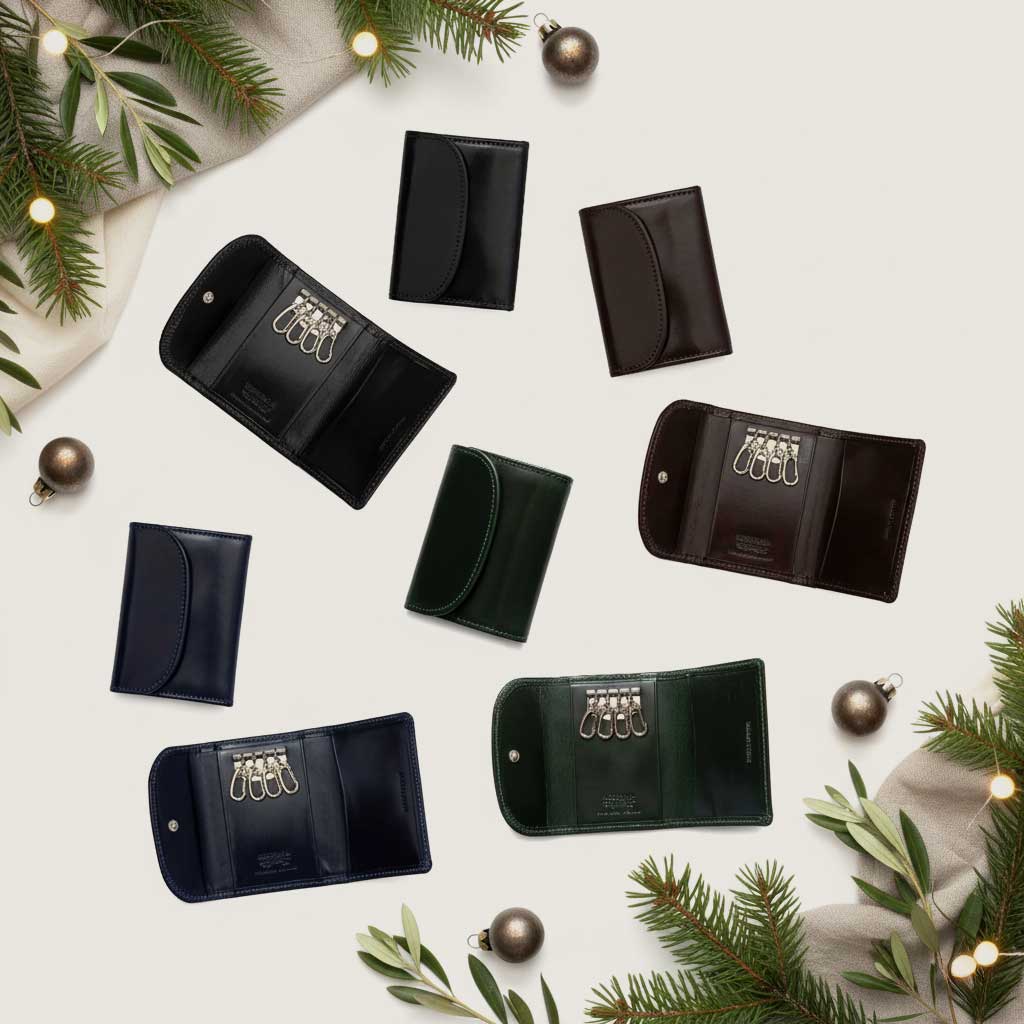 イングリッシュブライドルレザーを使ったフォールディングタイプのキーケース。カードキー用のポケットも備えた現代向けデザインです。