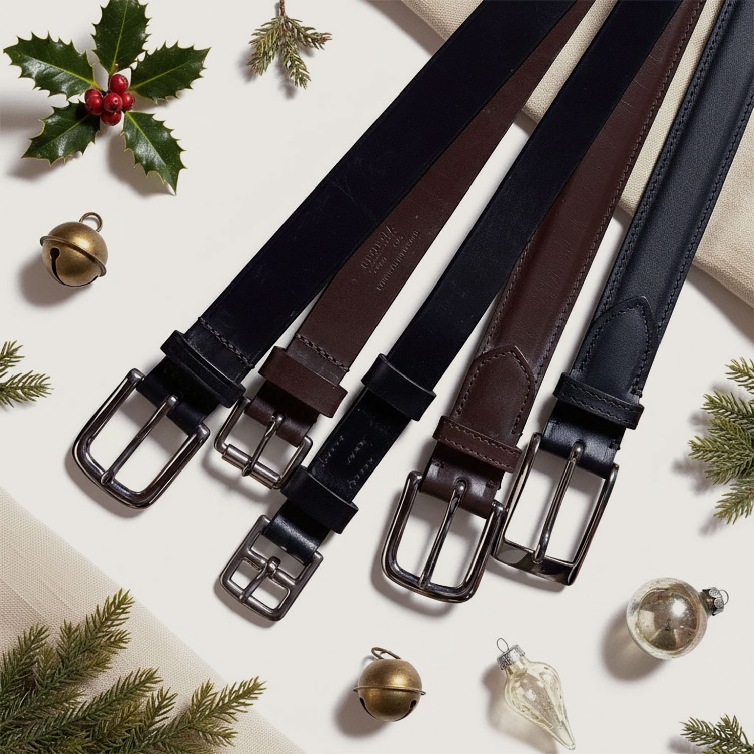 イングリッシュブライドルレザーを使った英国製のレザーベルトは、堅牢な仕上がりで、世代を超えて愛用されています。ビジネス用としても需要の高いアイテムです。
