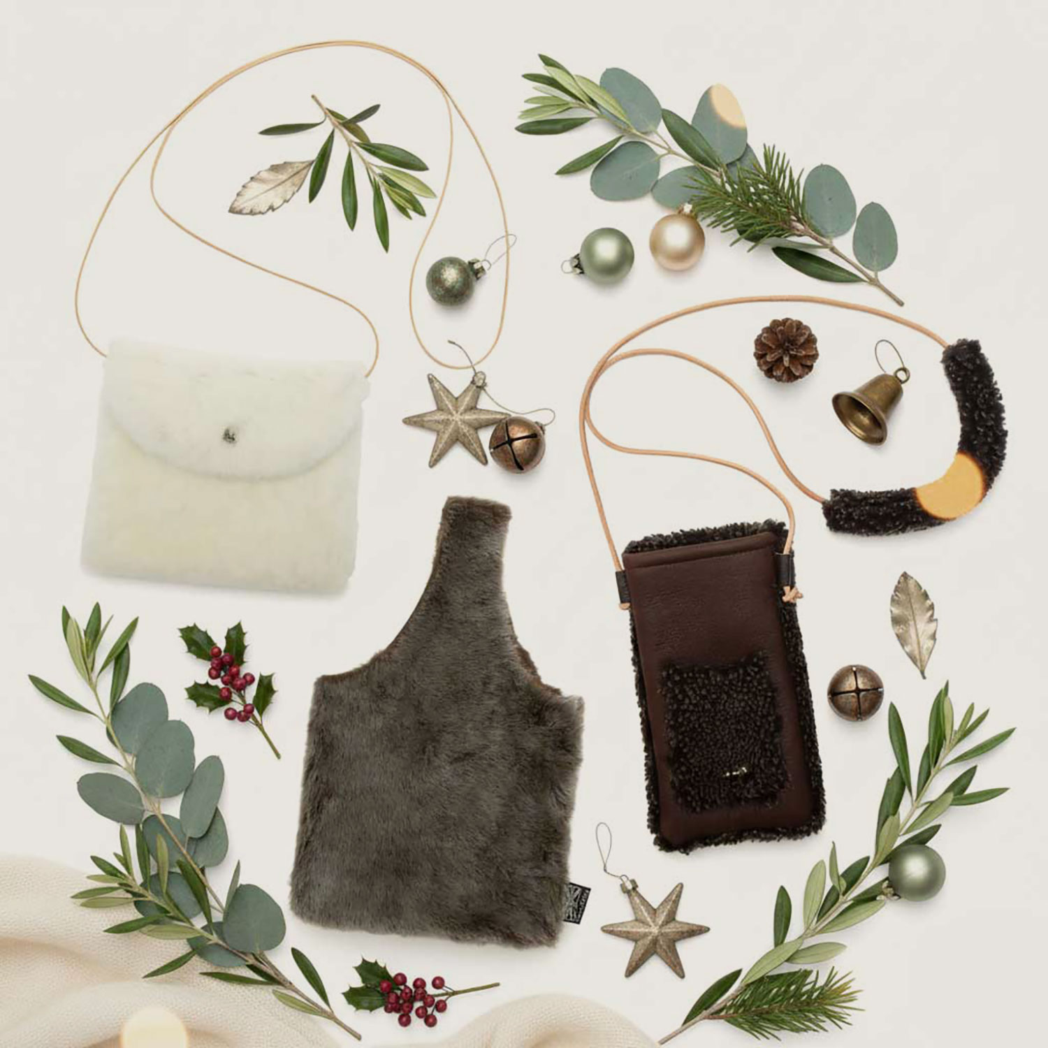 モコモコとした素材が温かみのあるムードを演出してくれるムートン製のスモールバッグ。ちょっとした小物を入れるのにちょうど良いサイズ感です。