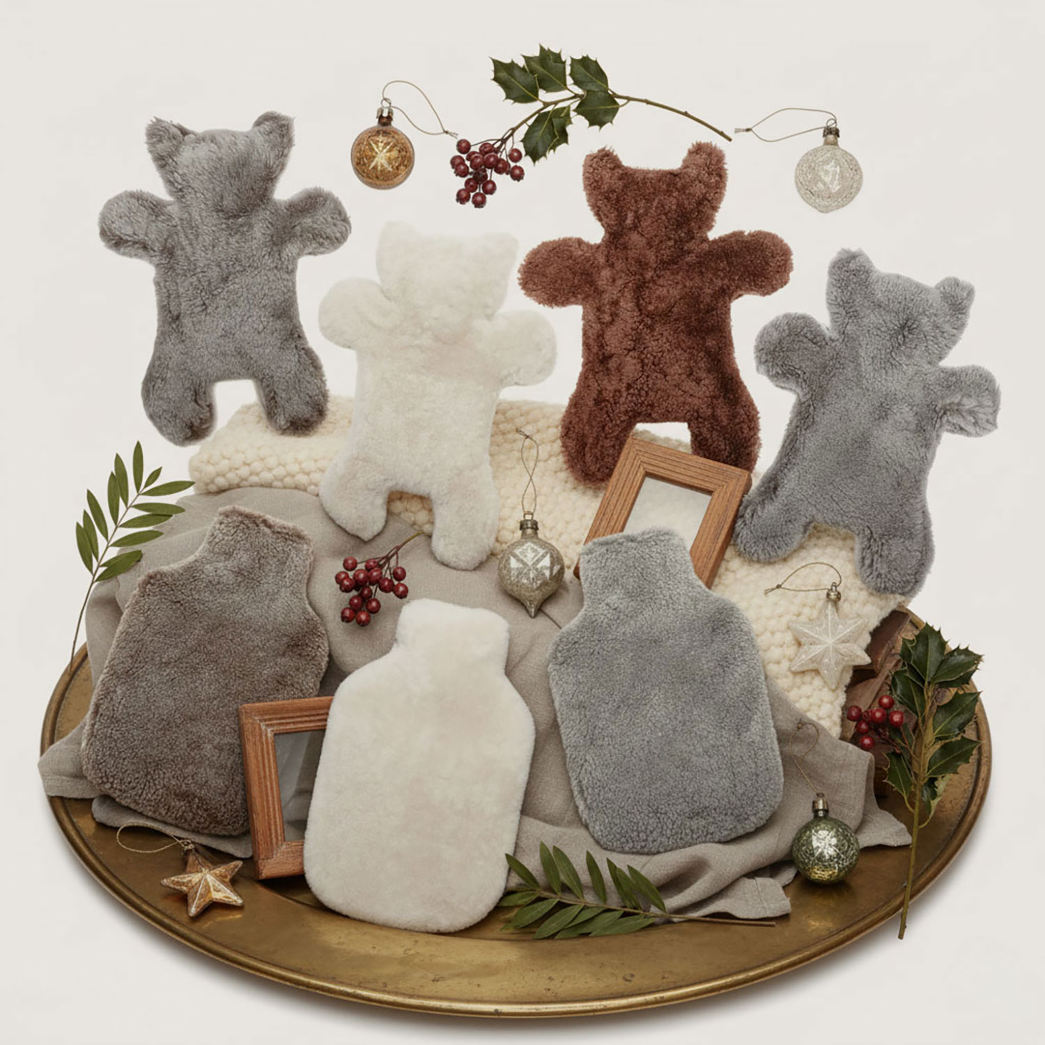 冬の寝室に欠かせない湯たんぽも、ムートンカバーを付けることで、ひと際愛着が湧く特別なものに。オーウェンバリーのベストセラーです。