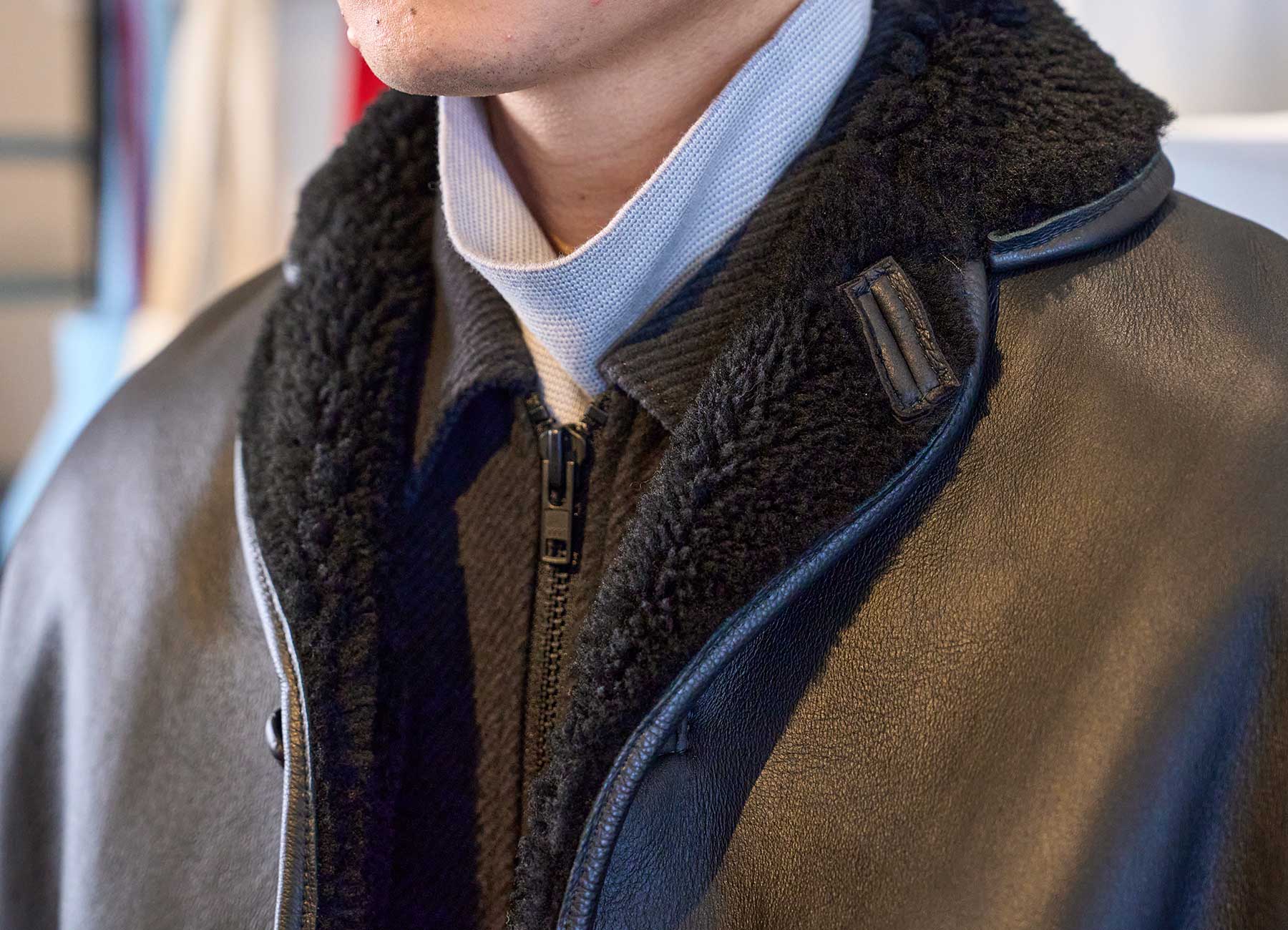以前から藤戸さんはシープスキンジャケットがお好きだという噂を小耳にはさんだので、これは藤戸さんにオファーするしかないなと。