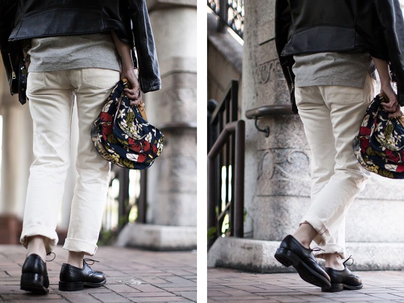 「デザイナーの藤戸剛さんが大好物だと自称するシープスキンウエアでスタイリング」