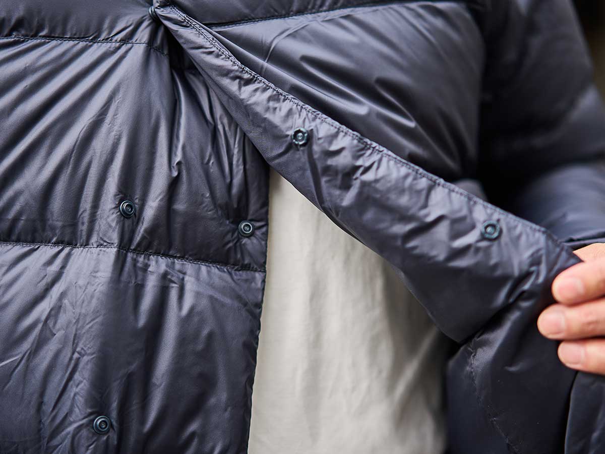レディースのロングセラーモデル『カンヌ』のメンズバージョン。引き裂き強度と防風性に秀でたウルトラライトタフタをアウターシェルに使用し、ジッパーやボタン類などの金属製パーツを極力使用することなく、軽量化を図りました。独特なロフト感が大きな特長で、自社で精選、加工した高品質のフランス産ダックダウンを十分に充填しており、真冬の寒さにも耐えうる保温性能も魅力のひとつです。ダブル仕立てのフロント部分はインナーアイテムとレイヤリングがしやすいよう、広めのラウンドネックに仕上げています。肩廻りや腕もタイトながら動きやすいデザインとサイズ感でストレスなく着用できます。裾や袖口はゴムシャーリングで風が侵入しにくい工夫をしています。