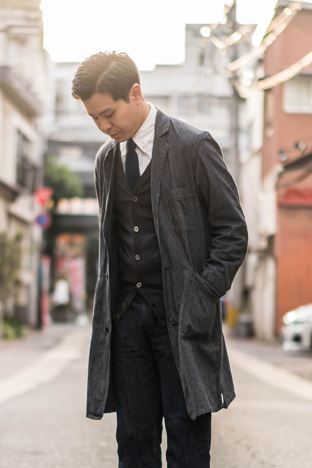 「デザイナーの藤戸剛さんが大好物だと自称するシープスキンウエアでスタイリング」