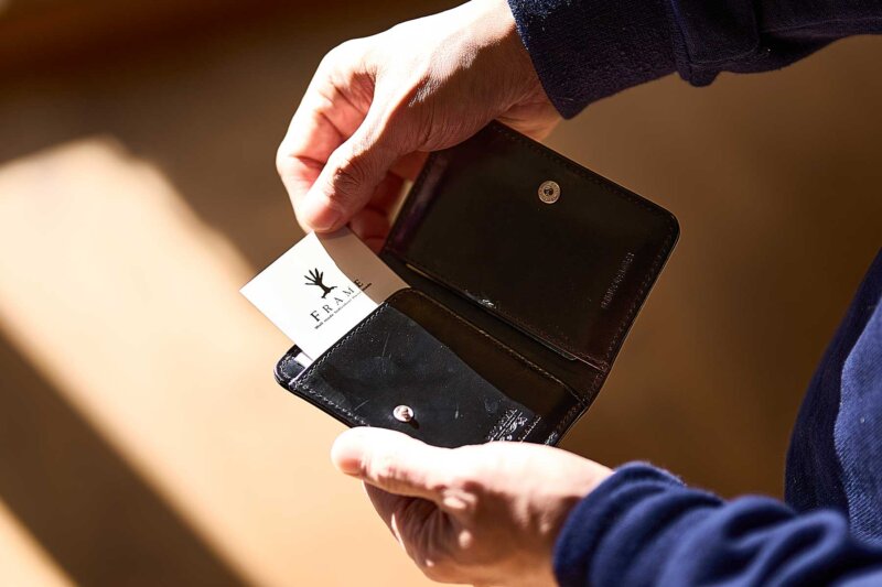同シリーズのS0051も名刺入れとして愛用していて、アクセスしやすいスリットポケットが名刺交換をスムーズにしてくれます。見た目以上に収納力もあり、カードケースとしてもオススメです。エッジも他のブライドルレザーシリーズとは違った処理をしていて、スマートなデザインに合っています。