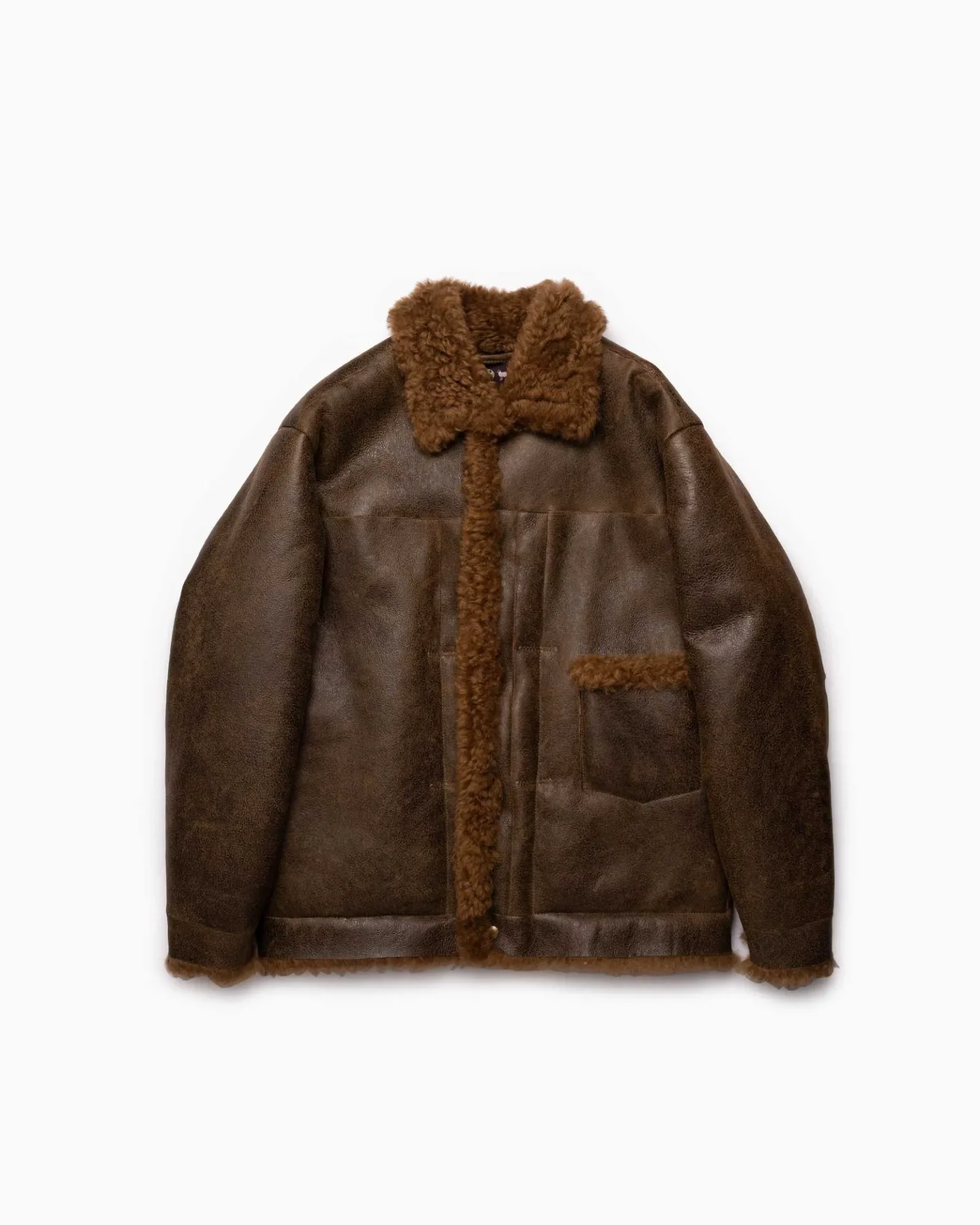 「デザイナーの藤戸剛さんが大好物だと自称するシープスキンウエアでスタイリング」