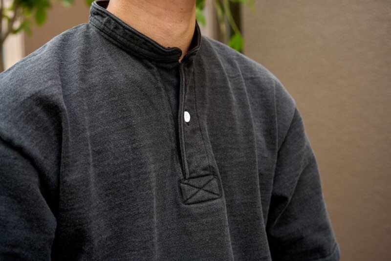 ボディにもこだわりました。前立てや首裏、脇の補強パーツなどバーバリアンらしさが堪能できるディテールを完備し、さらに裾にはスリットを入れました。実用性かつアクセントにもなるディテールは、普通のシンプルなTシャツに退屈さを感じ始めた方には新鮮に映るかも知れませんね。フェードしたブラック、ネイビー、レッドの3色展開です。