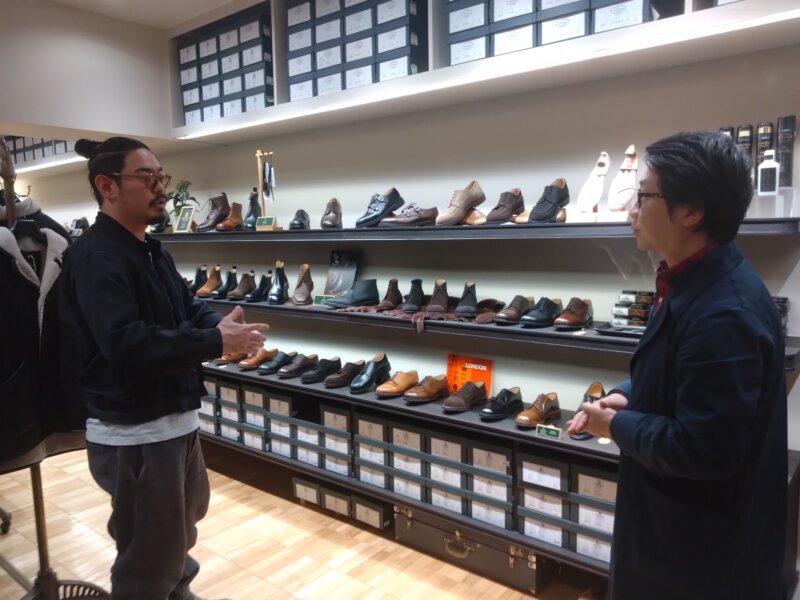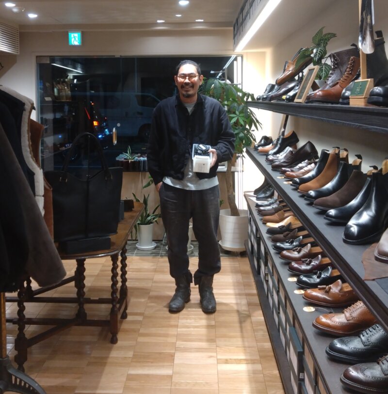 磨きのスペシャリスト「折茂」氏も来ていただいて、店長も革製品大好き人間なので