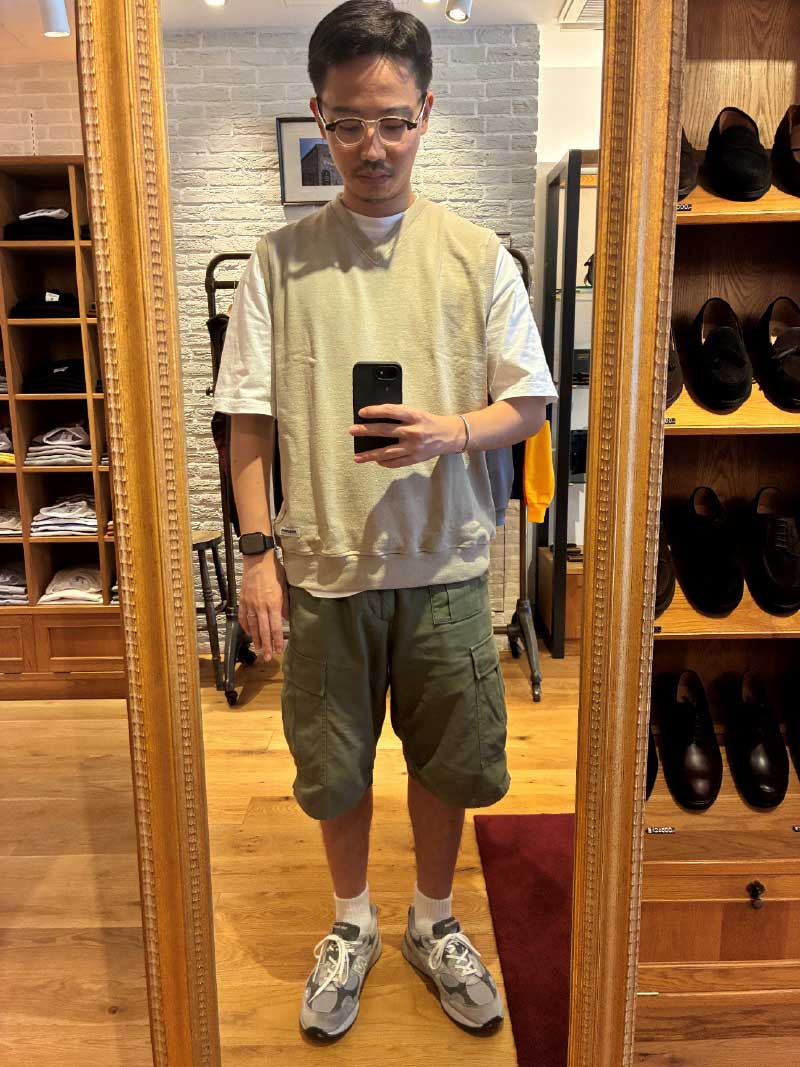 「デザイナーの藤戸剛さんが大好物だと自称するシープスキンウエアでスタイリング」
