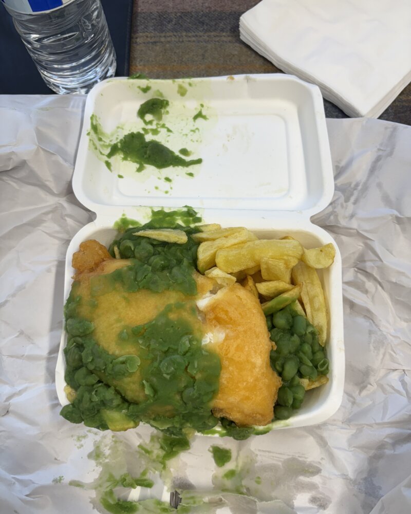 大きくて、ずっしりと重量を感じていたフィッシュ&チップスが、実はSサイズと知り、