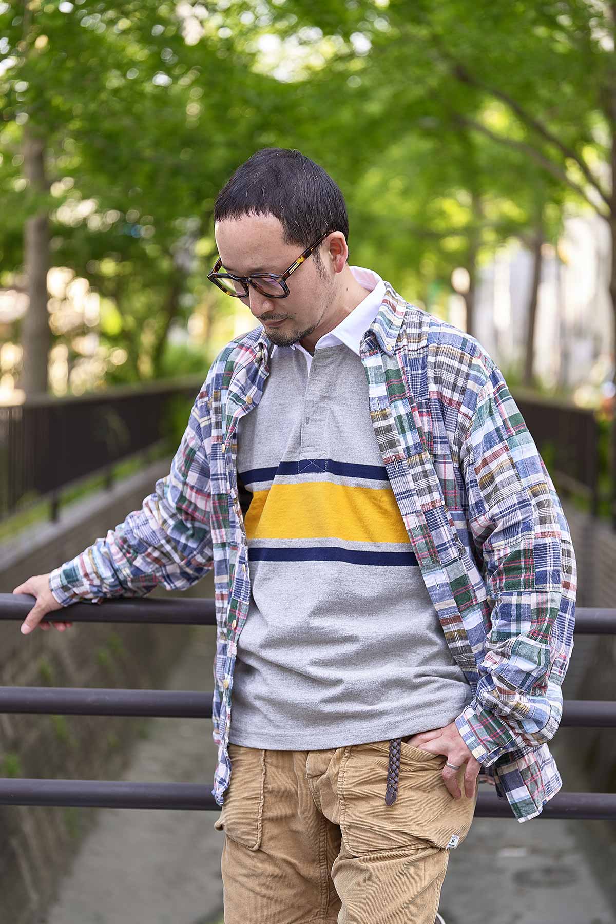 「デザイナーの藤戸剛さんが大好物だと自称するシープスキンウエアでスタイリング」