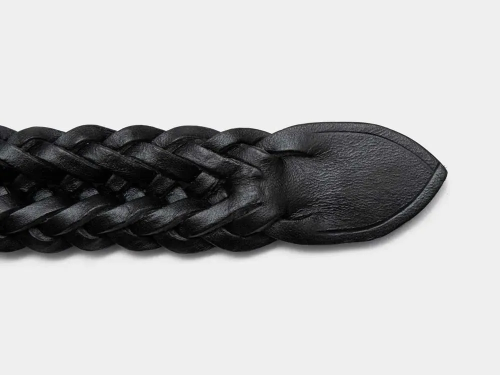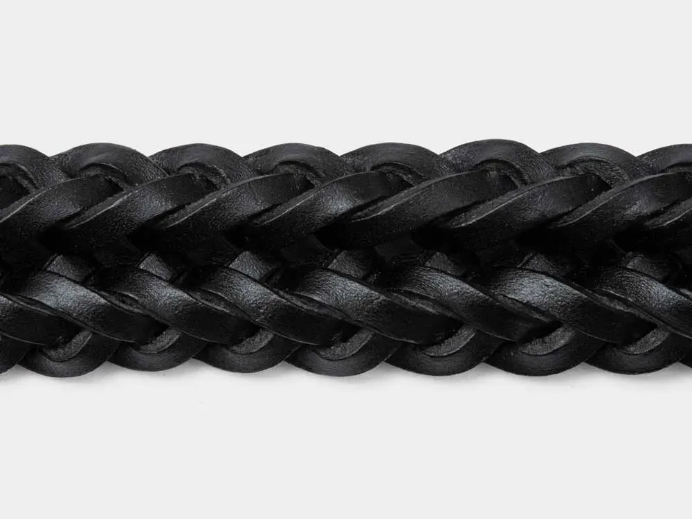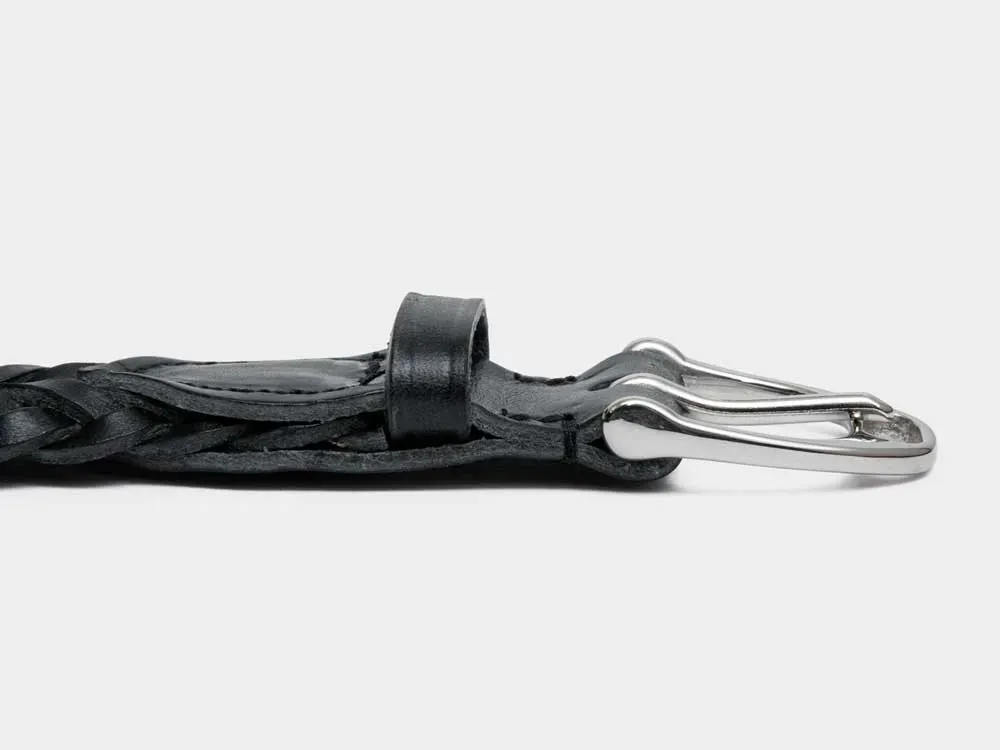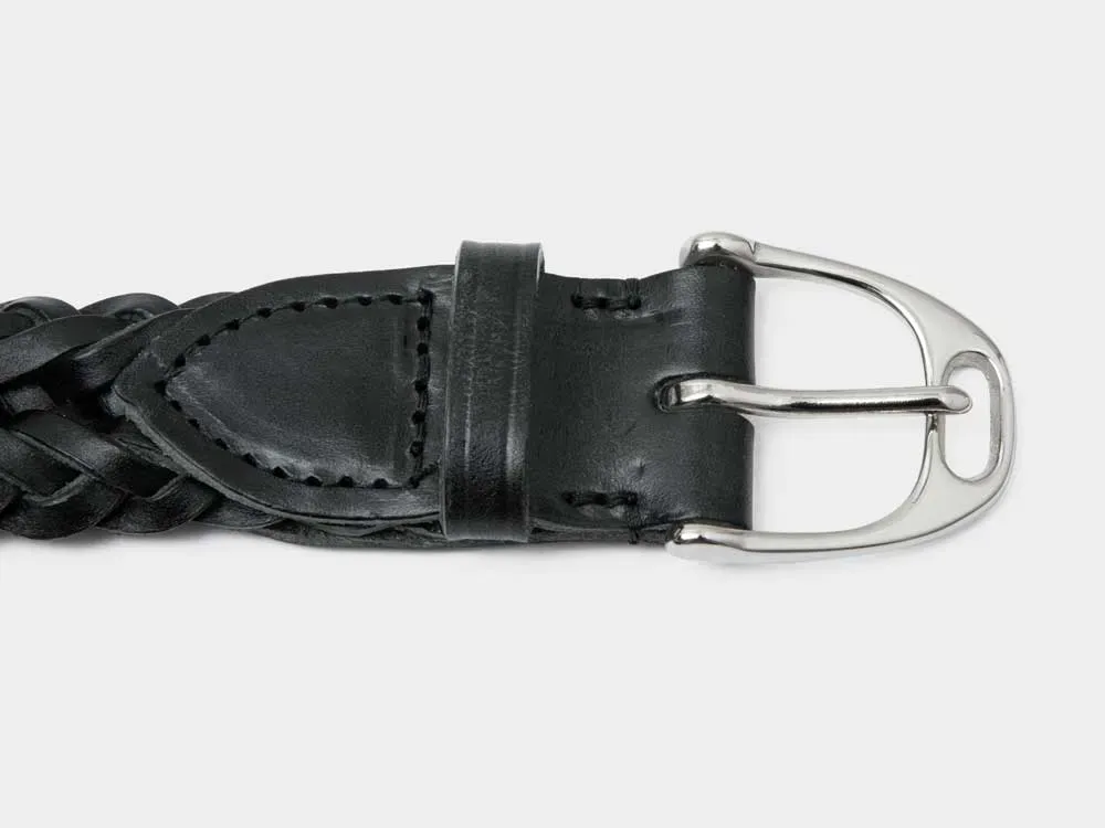 ベオーマのアイコニックなメッシュベルトは、肉厚で良質なカウハイド(成牛革)を職人の手で一本一本丁寧にしっかりと編み込まれています。ドレス系パンツとも相性が良いベルト幅で、律動的な編み目は端整に仕上げられています。目を惹く意匠的なバックルは、乗馬時に足を乗せる「鐙(あぶみ」)」を倣ってデザインされたもので、真鍮製をニッケルコーティングしています。