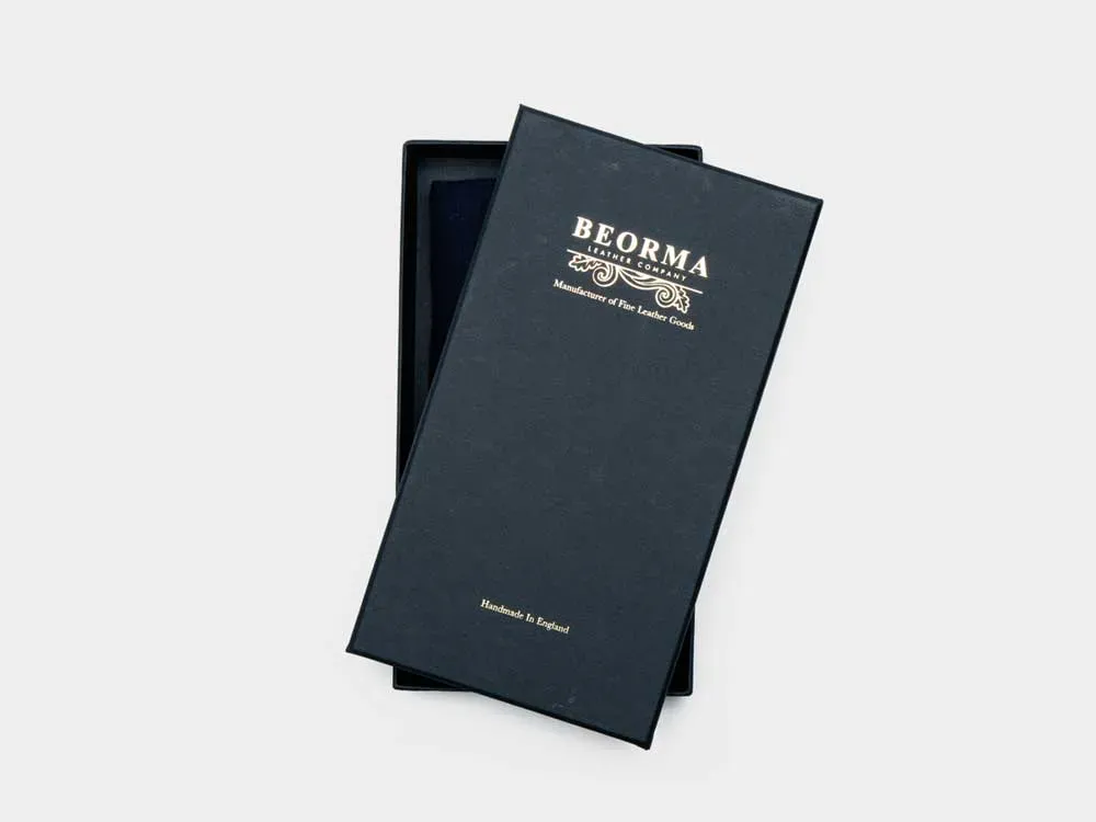 ブライドルレザー(牛革)は、古くから馬の頭部に装着する馬具(Bridle)や手綱の素材に使われていたことから馬具の名称がそのまま革の名称となりました。強くて耐久性のある堅牢な革で、馬の肌にも優しい滑らかな手触りを持ちます。上質な植物タンニン鞣しの革に天然由来の獣脂やオイルをブレンドした特別なグリースを十分に浸透させています。内部に浸透した油分が時折、革の表面に浮き上がることで粉状の白い膜ができることがあります。これは「ブルーム」として呼ばれるもので、上質なイングリッシュブライドルレザーの特徴です。そして、使い始めは堅牢な革が時間をかけて次第に柔らかく手に馴染む、経年変化の様子もお楽しみ頂けます。ベオーマではブラック、ダークブラウン、ネイビーを定番カラーとして展開しています。いずれもブライドルレザーのクラシックな佇まいと調和した色合いです。