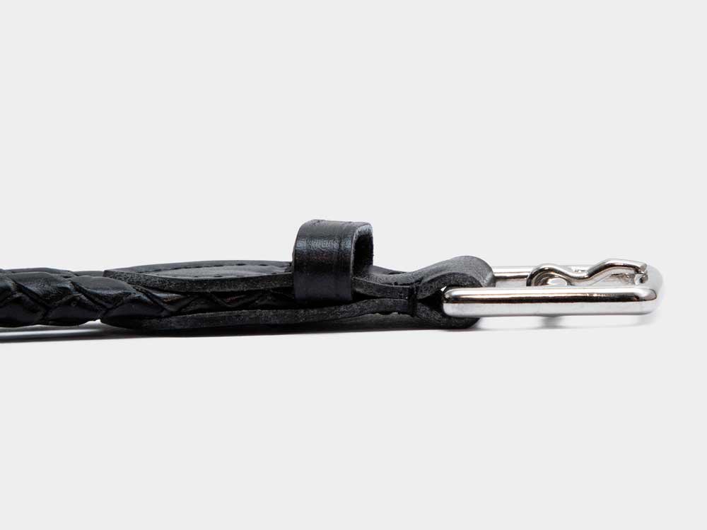 ベオーマのアイコニックなメッシュベルトは、肉厚で良質なカウハイド(成牛革)を職人の手で一本一本丁寧にしっかりと編み込まれています。P0012は丹念に筒状に編み込んだものを連ねたダブルチューブメッシュベルトです。複雑なデザインながらも細部まで丁寧に作り込まれており、コーディネイトのポイントとして洗練された印象を与えてくれます。バックルは馬具の鐙(あぶみ)部分に使われている特徴的なデザインで、真鍮製をニッケルコーティングしています。