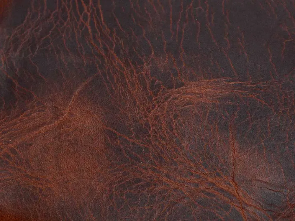イタリアのトスカーナに拠点を置き、伝統的な製法で革を鞣している「BADALASSI CARLO」社が手掛けるプレミアムなフルベジタブルタンニングレザー。鞣しの過程で加えられるワックスにより油分を多く含んでおり、しっとりとした滑らかな手触りとしなやかな柔らかさを持つプルアップレザーです。不規則なシボの入り具合と色の陰影によって生まれるマーブル調の表情は味わい深く、まるでヴィンテージのような魅力を放ちます。