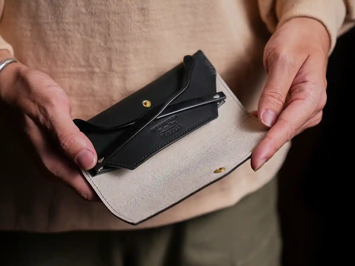 軽くて携帯性にも優れたアイグラスケースはメガネやサングラスの持ち運びや保管に最適です。ライニングにはレンズやフレームを保護するためにピッグスキンスエードを使用、様々なフレームのサイズや形状に対応して収まるように設計されています。