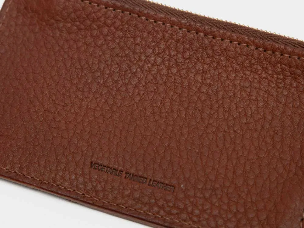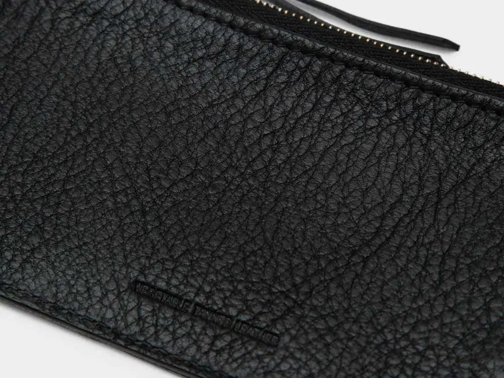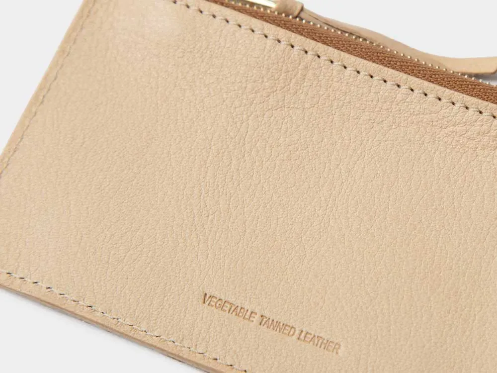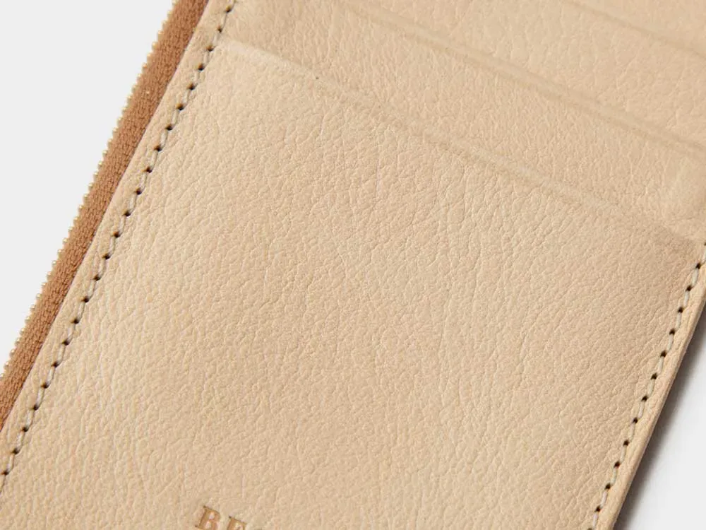 携帯しやすいコンパクトなジップケースの外側にカードポケットがついたフラグメントケースは、社会のキャッシュレス化と共に需要が急増したミニウォレットです。外側に3つのカードポケットを備えており、本体のriri社製ジップ付きケースにはカード類や小銭、折り畳んだ紙幣などの最低限の現金を入れることができます。また、外出時には、駐車券やルームキー、コインロッカーのキーなどの小物入れになるなど利便性に優れています。