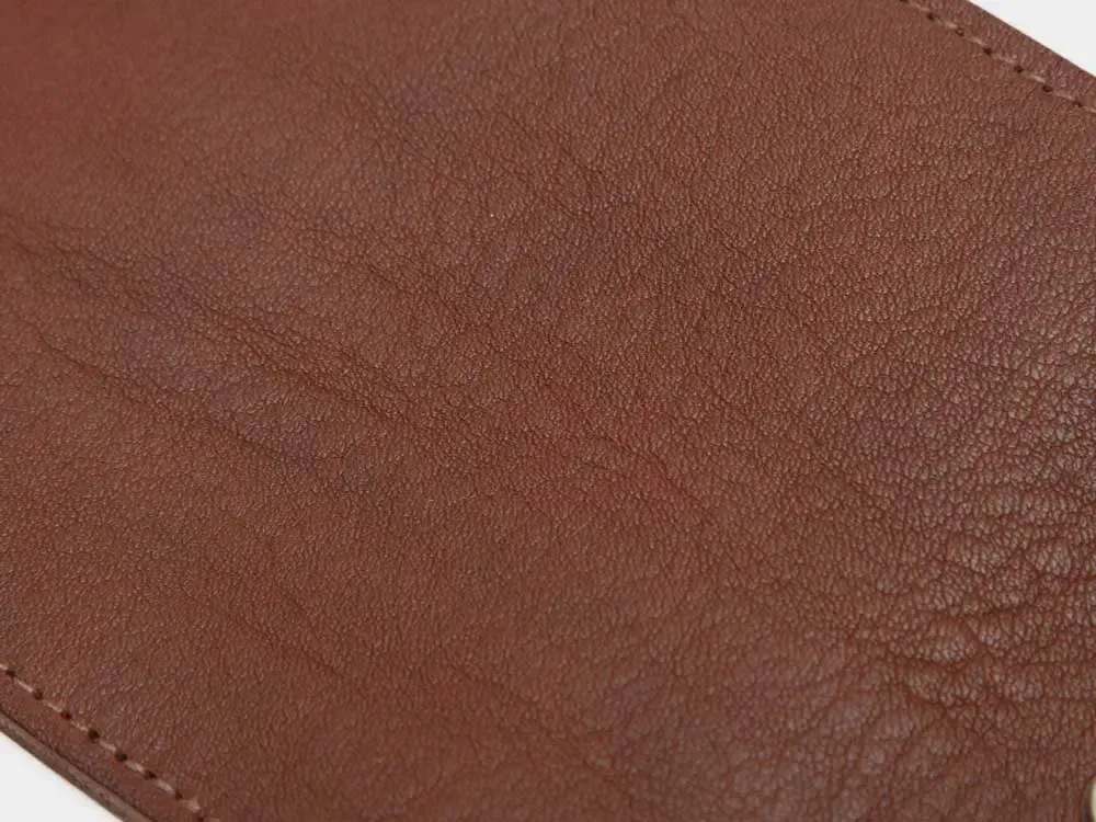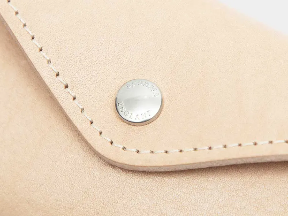 「ナチュールレザー」は、自然豊かな北欧の地で作られた柔らかな風合いを特徴とした上質なフルベジタブルタンニングレザーです。トレーサビリティ(原皮の産地/農場を追跡することができるシステム)を取り入れたスウェーデン産の原皮を使用し、鞣しや染色の工程では極力環境への負荷が少ない製法を取り入れています。ドラムの中で回転させながら仕上げ加工を行うことで、柔らかさと滑らかな肌触りを引き出しています。同時に革表面のシボはより強調され、個性豊かなテクスチャーを生み出しています。