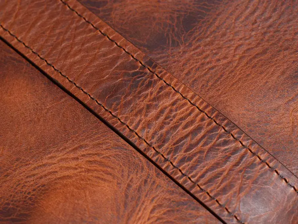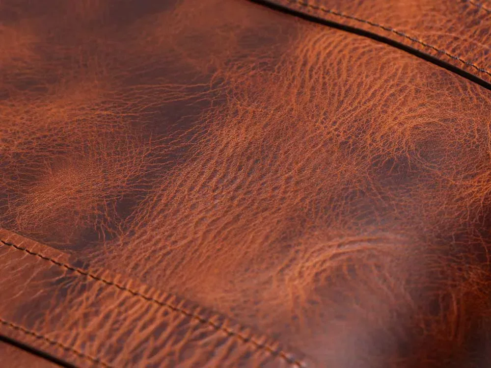 イタリアのトスカーナに拠点を置き、伝統的な製法で革を鞣している「BADALASSI CARLO」社が手掛けるプレミアムなフルベジタブルタンニングレザー。鞣しの過程で加えられるワックスにより油分を多く含んでおり、しっとりとした滑らかな手触りとしなやかな柔らかさを持つプルアップレザーです。不規則なシボの入り具合と色の陰影によって生まれるマーブル調の表情は味わい深く、まるでヴィンテージのような魅力を放ちます。