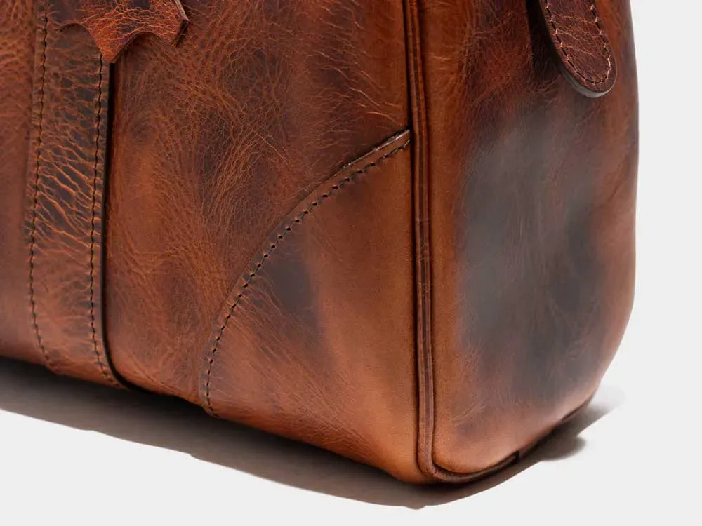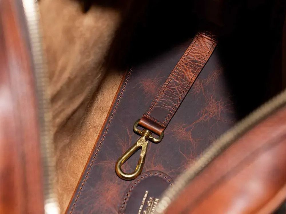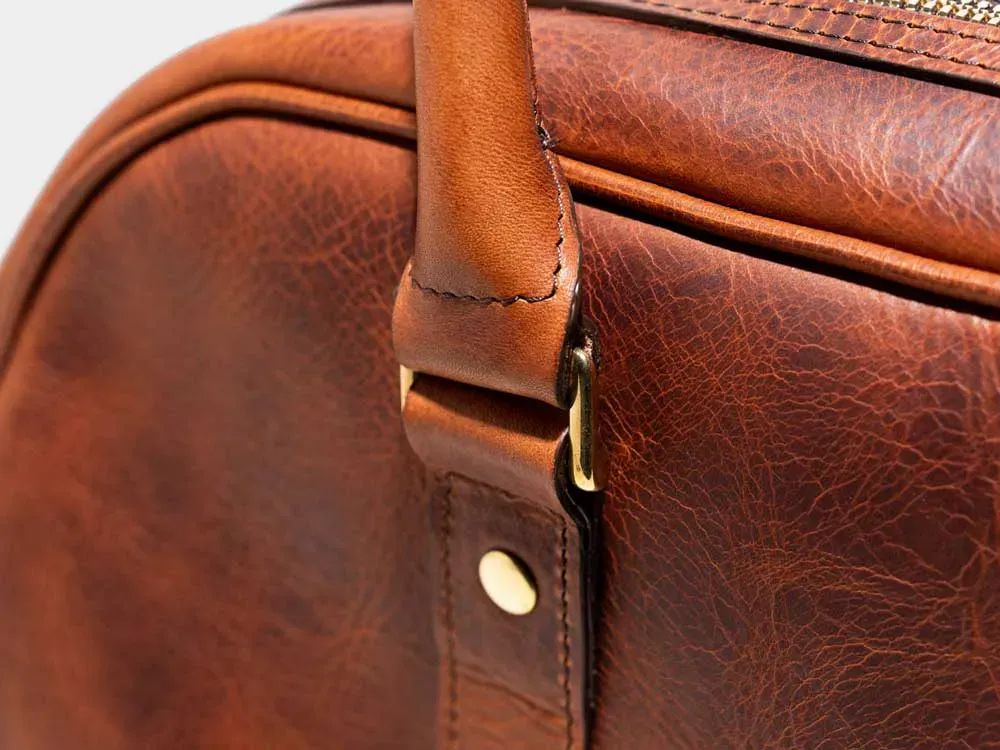 ラージサイズのウィークエンドバック「スタンフォード」のクラシックな佇まいをそのままに、デイリーに使い易いハンドバッグサイズにアレンジしたものがL0113「チェサム」です。しっかりとしたマチ幅もあり、普段使いに十分な収納性を確保しています。ジッパーは堅牢さに定評のあるスイスriri社製を採用しています。