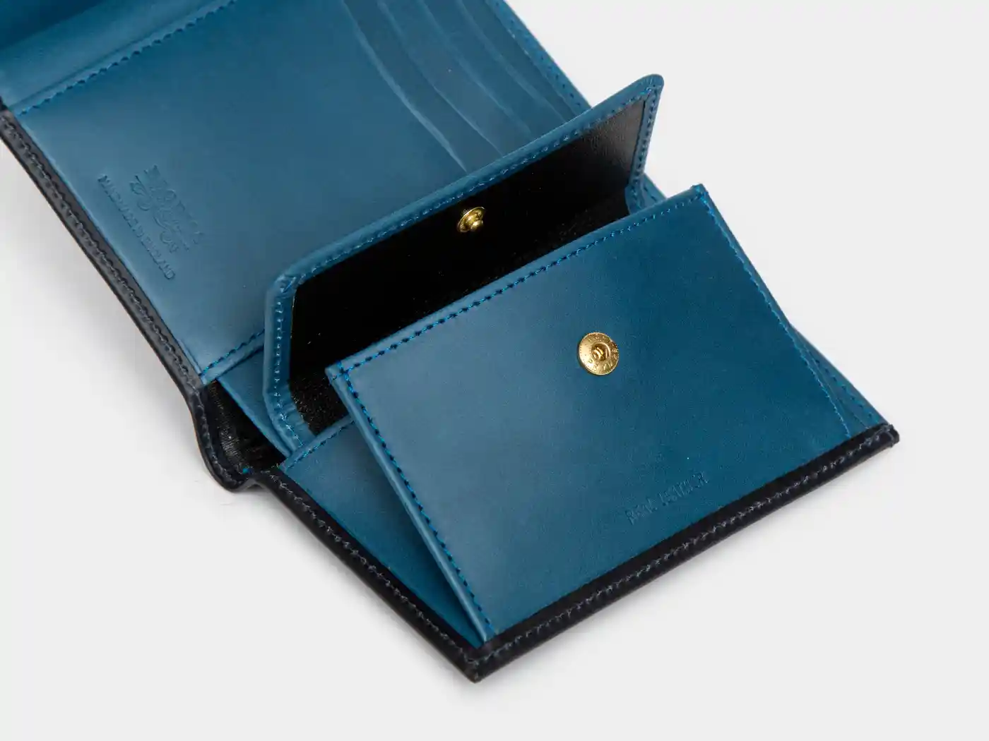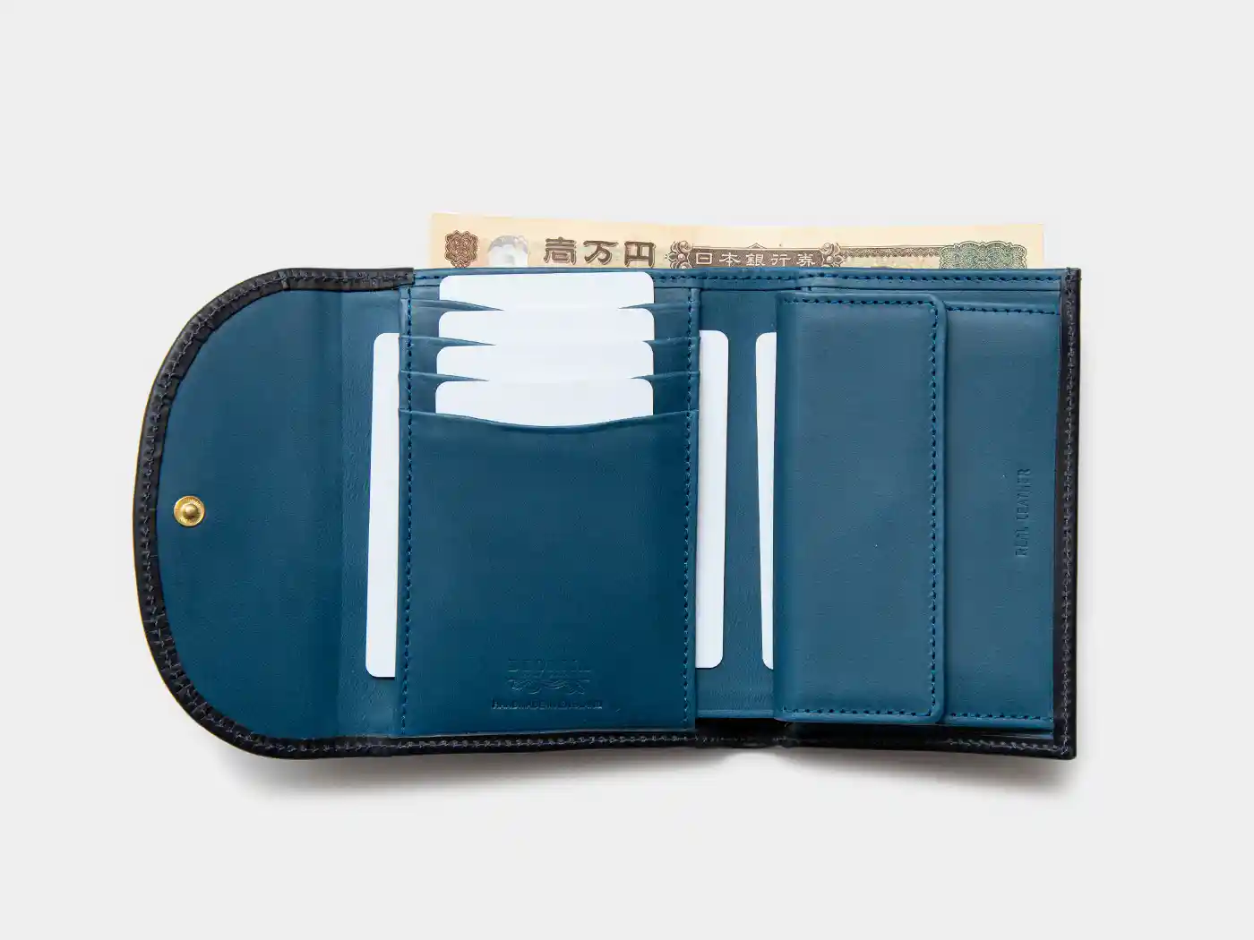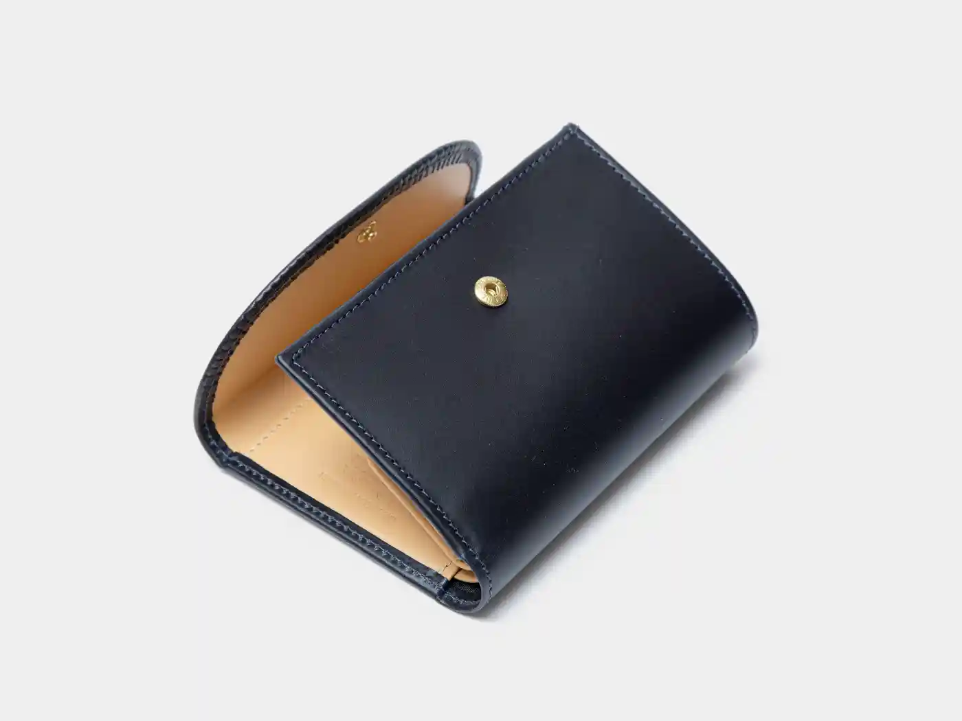 ラウンドしたフラップがアイコニックな「三つ折りウォレット」は、抜群の収容性と携帯しやすい手頃なサイズ感のバランスが絶妙です。札入れと大型のコインケースのほかに4室のカードポケットと3室のマルチポケットを備えています。