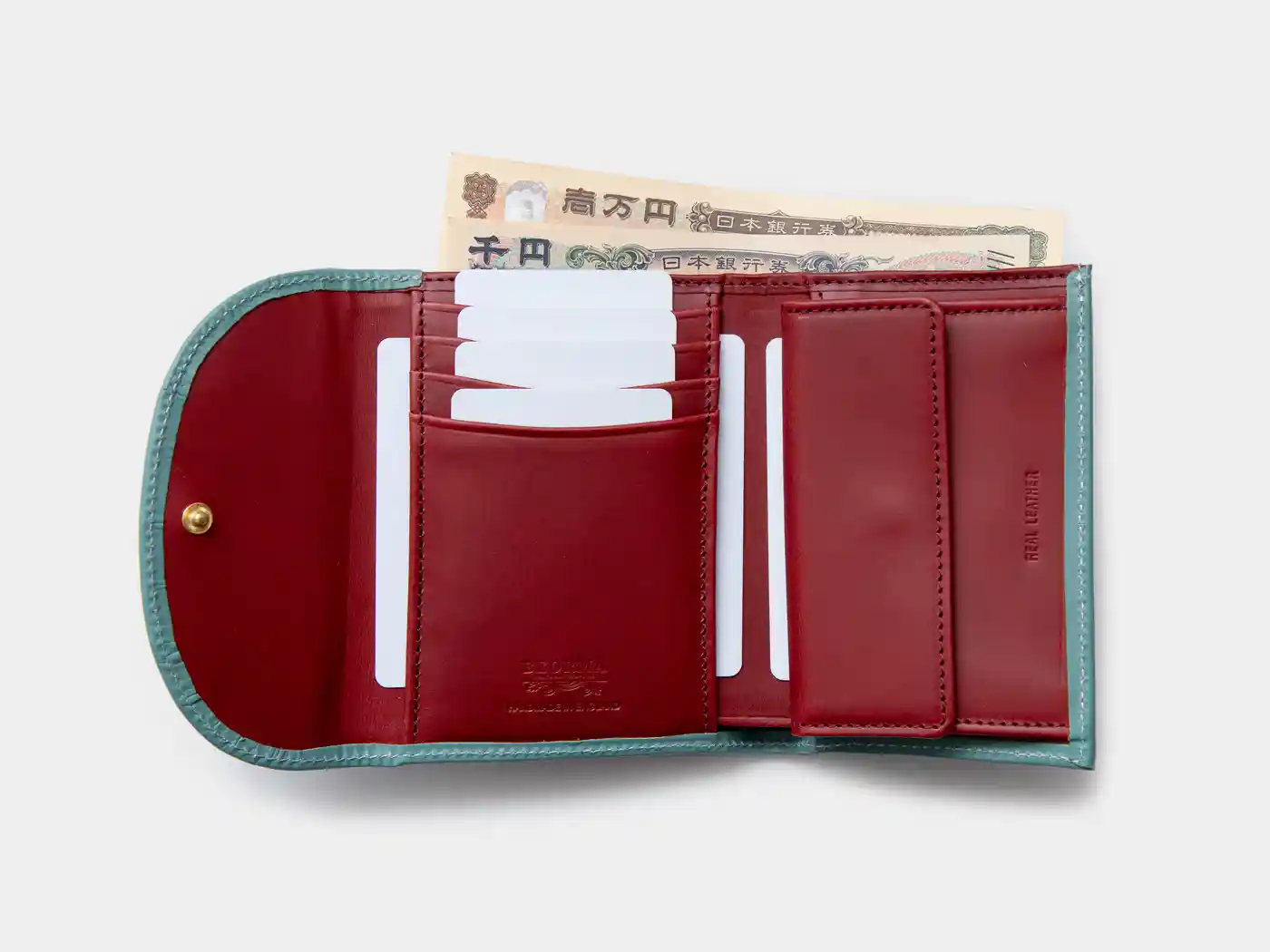 ラウンドしたフラップがアイコニックな「三つ折りウォレット」は、抜群の収容性と携帯しやすい手頃なサイズ感のバランスが絶妙です。札入れと大型のコインケースのほかに4室のカードポケットと3室のマルチポケットを備えています。