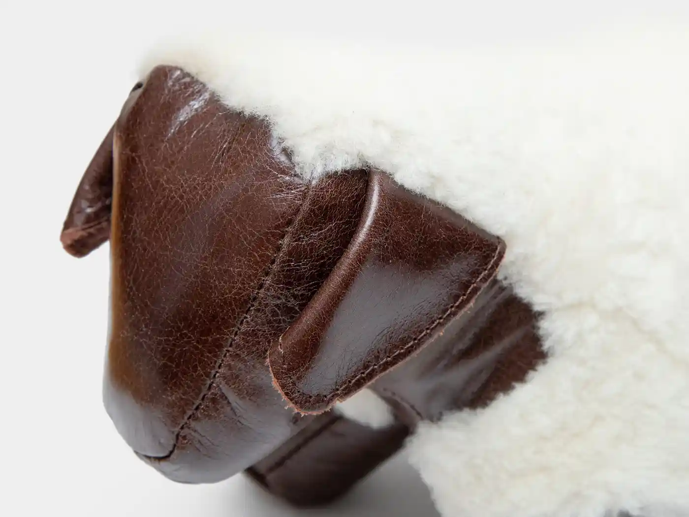 やわらかなシープスキンと上質なレザーを組み合わせて仕立てた、羊モチーフのドアストッパーです。ふっくらとしたボディとしっとりとしたレザーの質感が存在感を放ち、置いておくだけでインテリアのアクセントに。適度な重みがあるため、ドアをしっかりと固定しつつ、遊び心のあるデザインで空間を温かく彩ります。