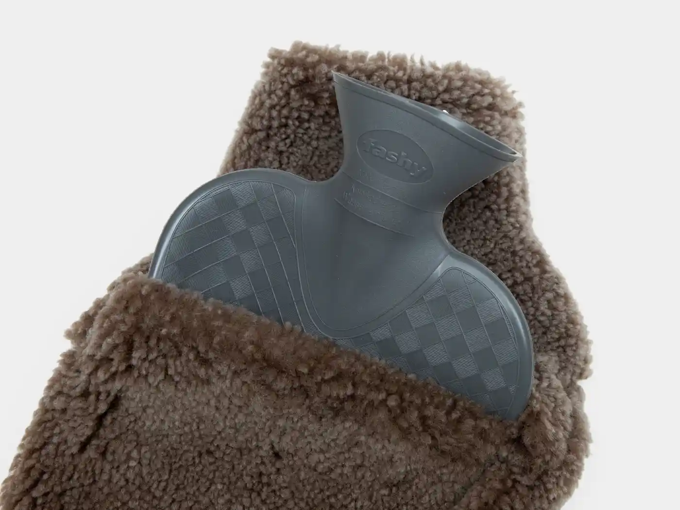 ドイツのCE認証メーカー「Fashy」社製2Lの湯たんぽがセットになっており、届いてすぐにお使いいただけます。頭の部分に給湯用のスリットがあり、広口の湯たんぽは注ぎやすくこぼれにくい仕様。使用後は注ぎ口を内側にすっきりと収納できます。また、湯たんぽは取り外し可能で、手洗いによるお手入れにも対応しています。