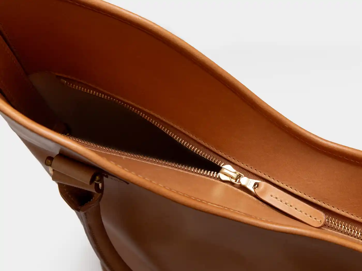 L0106「モーガン」は上質なフルベジタブルタンニングレザーを贅沢に使用したトートバッグです。シンプルながらも細部は丁寧に作り込まれており、曲線を取り入れた特徴的なフォルムによって、洗練されたデザインに仕立てられています。荷物の飛び出し防止とセキュリティを兼ねたジップトップ仕様で、内側にはキーフックを備えています。バッグのボトム部分はパッドで補強されており、自立性が確立された安定感のある使い勝手です。