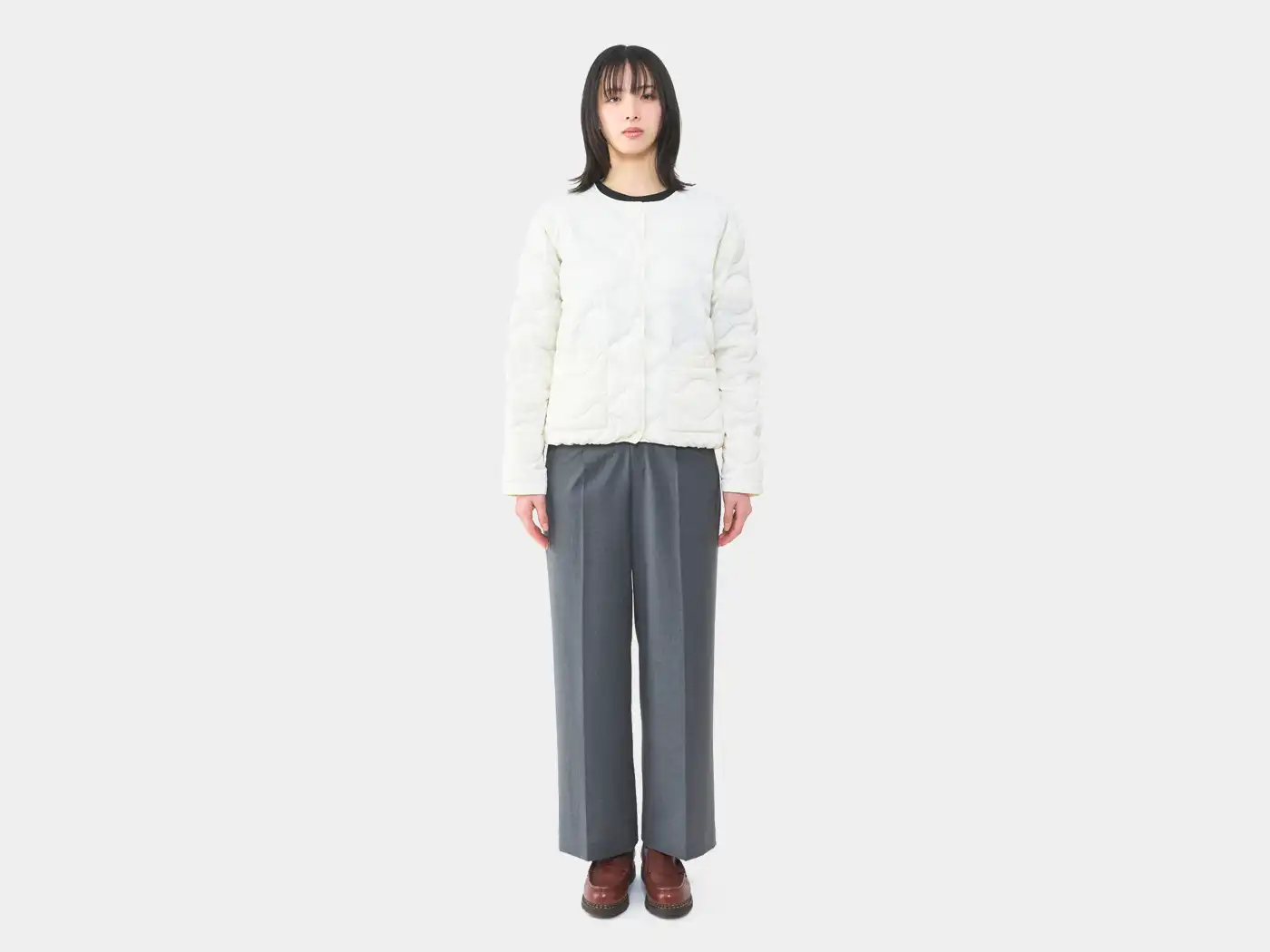 ラウンドネックに、特徴的なオニオンキルトを施し、柔らかな印象に仕上げました。