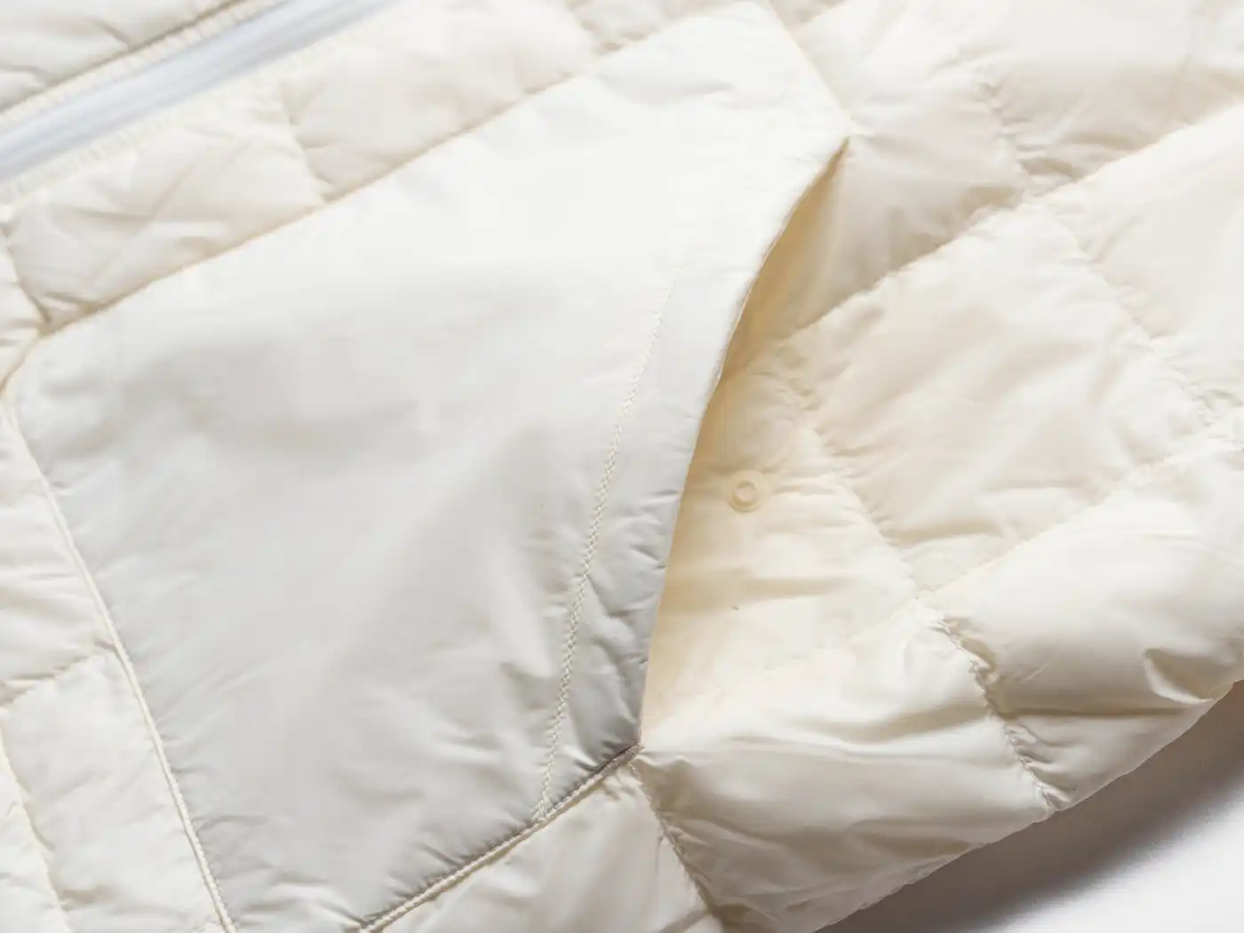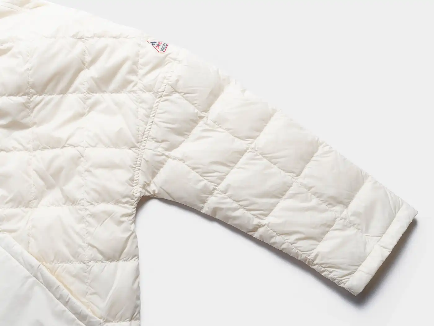超軽量なナイロンタフタ素材と上質なフレンチダックダウンを組み合わせることで、軽い着心地ながらも十分な保温性を兼ね備えダウンジャケット。スクエアなキルトデザインでフロントの大きなパッチポケットがデザインのポイントに。身幅にゆとりを持たせたリラックスフィットです。