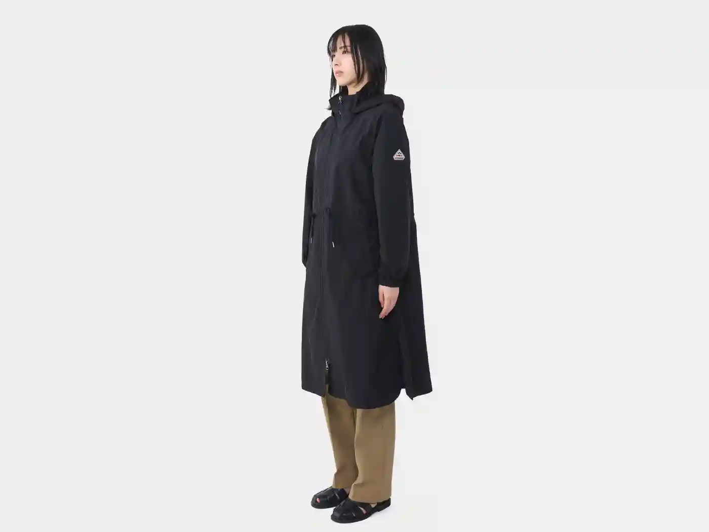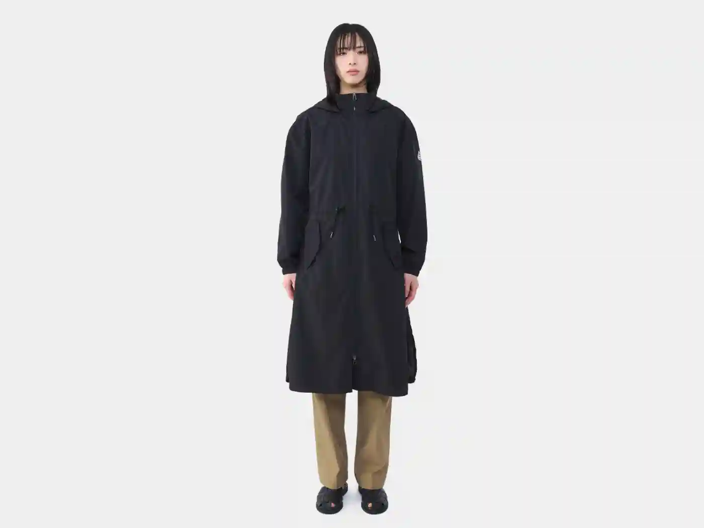 防風、撥水、透湿性に優れ、簡易的な防水にも対応したフーデッドロングコート。ウエストのドローコードや、フードのドローコードでフィット感の調整が可能です。また両サイドにスリットを入れることで足捌きもよく、動きやすさとエレガンスを兼ね備えた一枚。風の冷たい日や天候の不安定な日でも心強く、春先から初秋まで幅広く活躍します。