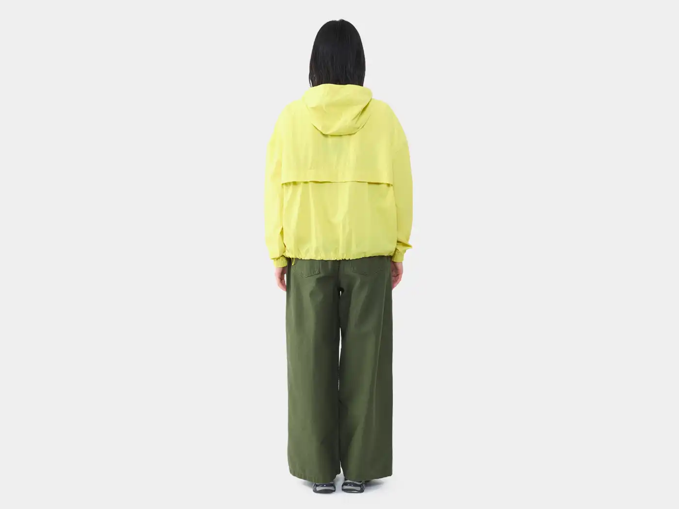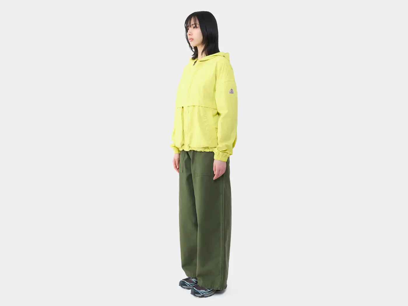 リサイクルナイロンを使用したリラックスフィットのウインドブレーカーです。